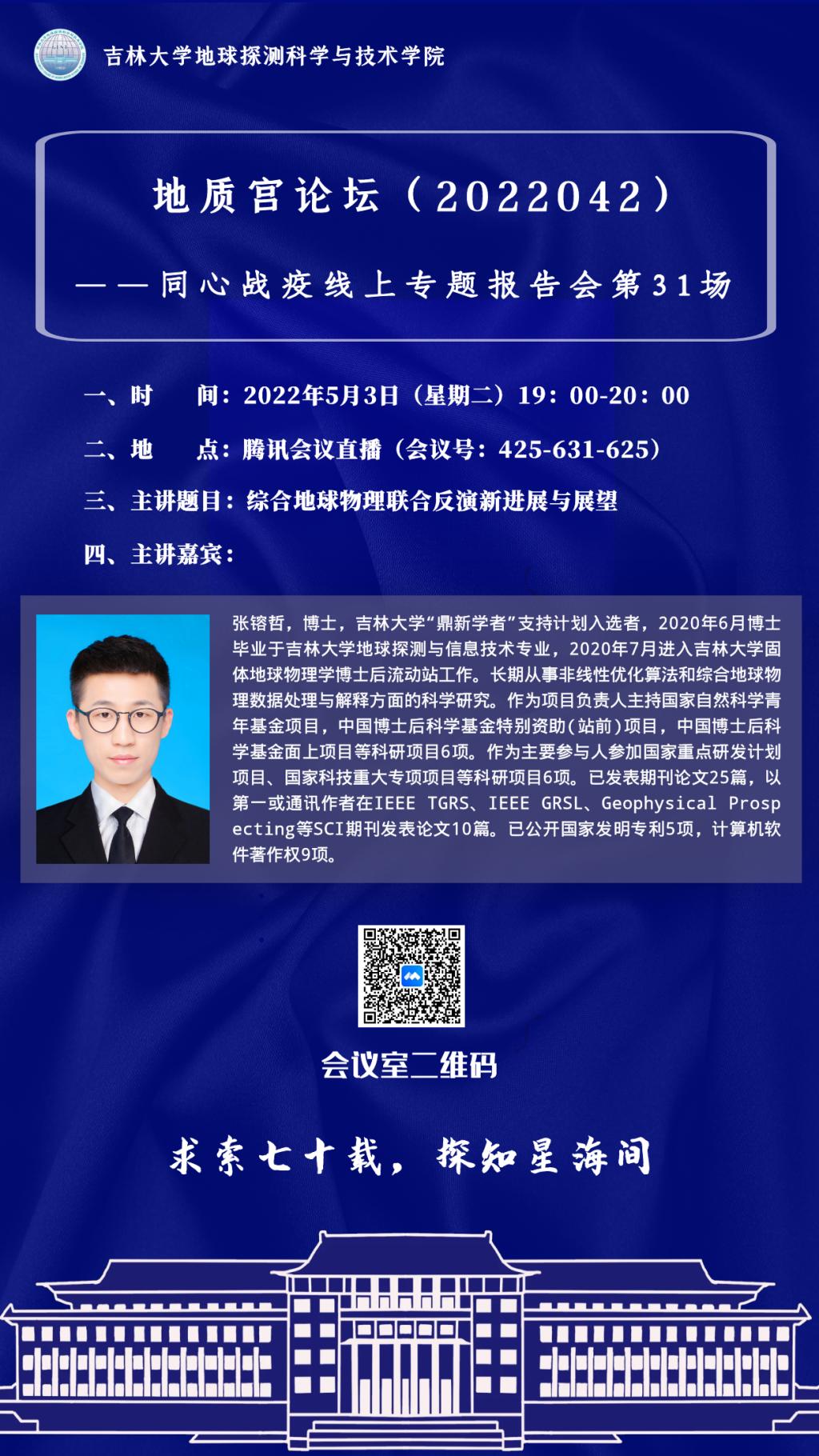 永利yl23411·地质宫论坛(2022042)—永利yl23411张镕哲博士学术报告