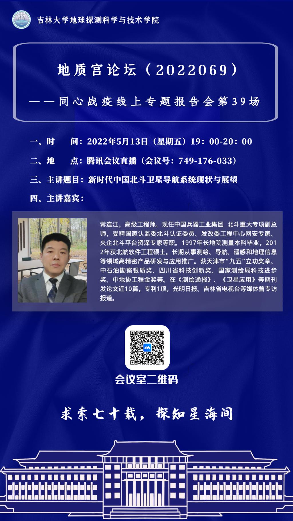 永利yl23411·地质宫论坛(2022069)—中国兵器工业集团蒋连江高级工程师学术报告