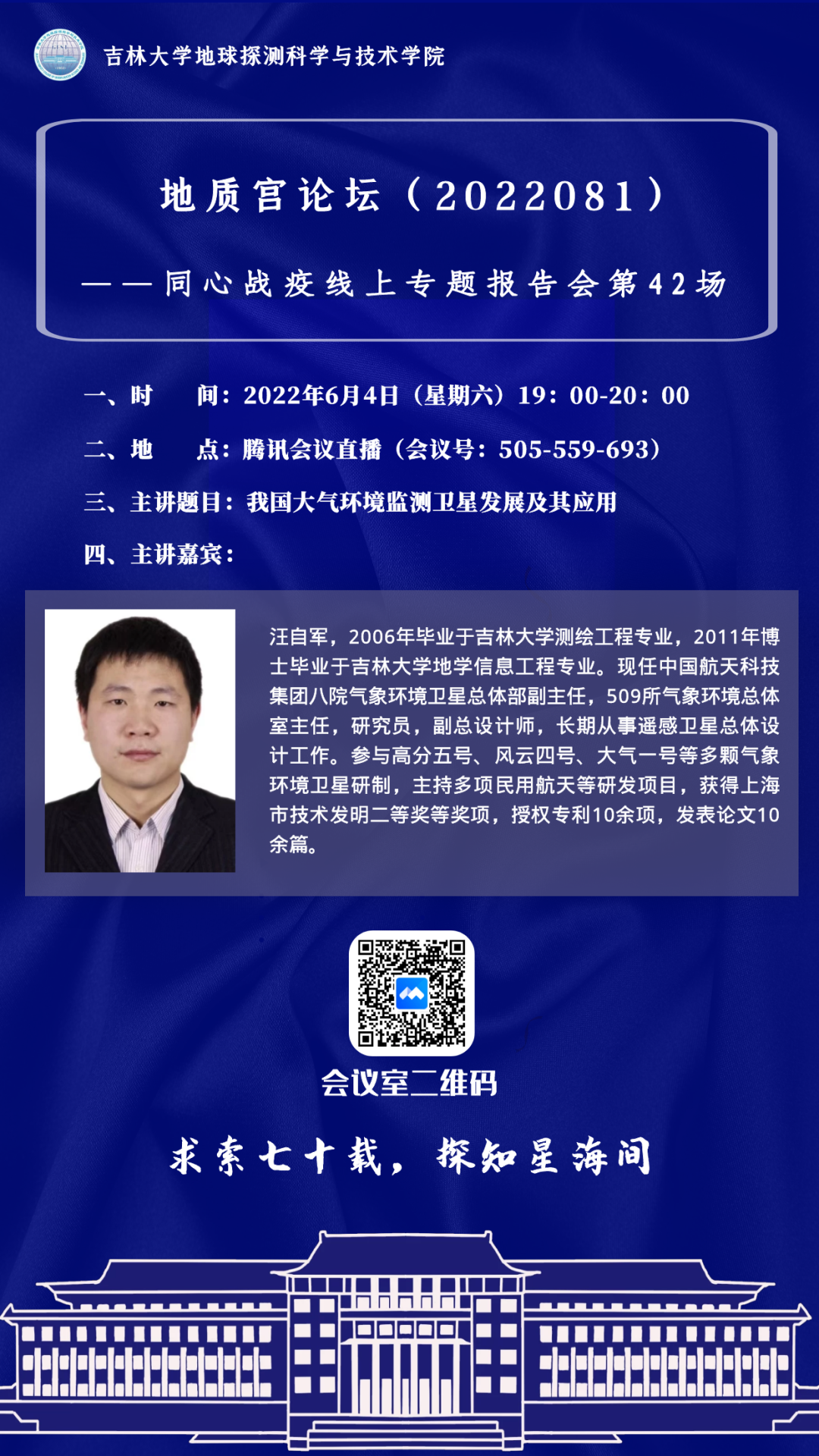 永利yl23411·地质宫论坛(2022081)—中国航天科技集团八院气象环境卫星总体部副主任汪自军研究员学术报告