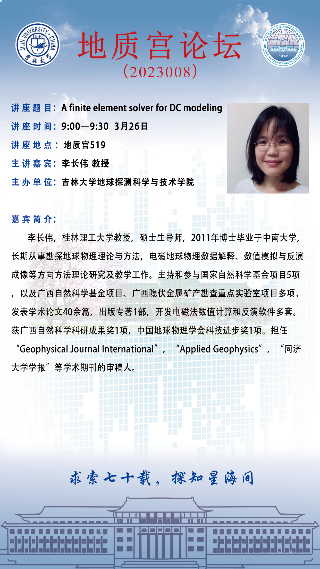 永利yl23411·地质宫论坛(2023008)—桂林理工大学李长伟教授学术报告