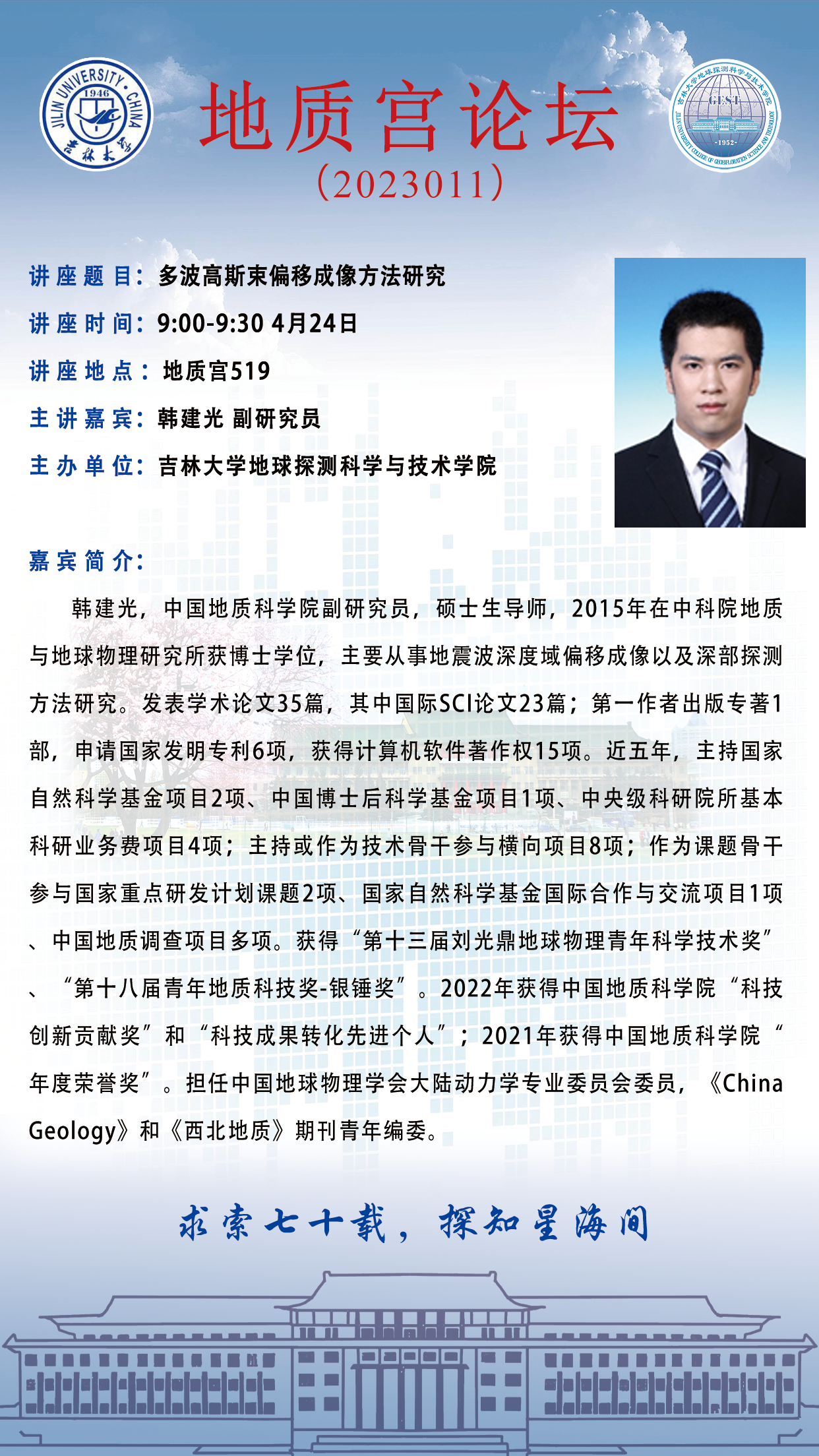 地学70周年·永利yl23411·地质宫论坛(2023011)—中国地质科公司韩建光副研究员学术报告