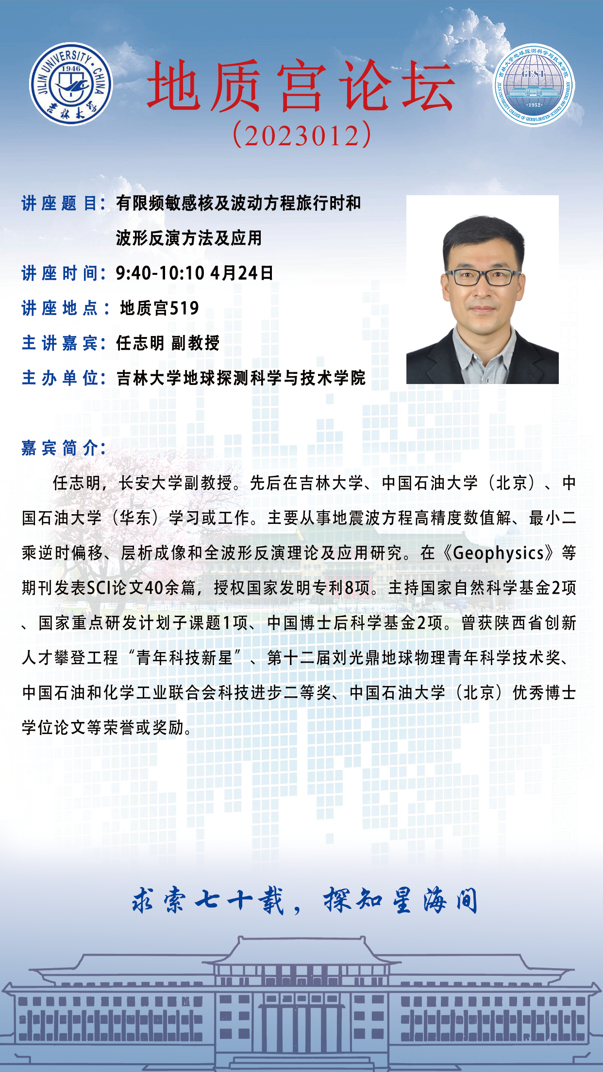 地学70周年·永利yl23411·地质宫论坛(2023012)—长安大学任志明副教授学术报告