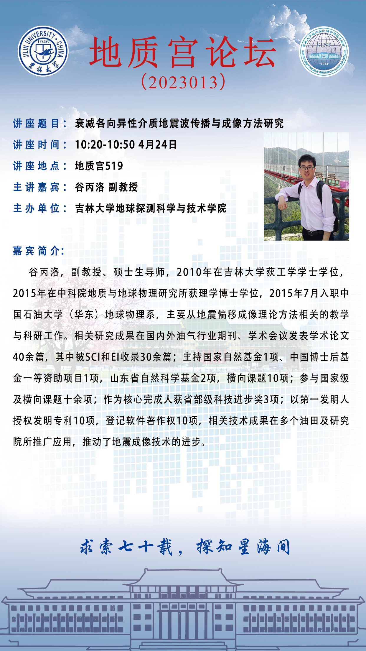 地学70周年·永利yl23411·地质宫论坛(2023013)—中国石油大学谷丙洛副教授学术报告