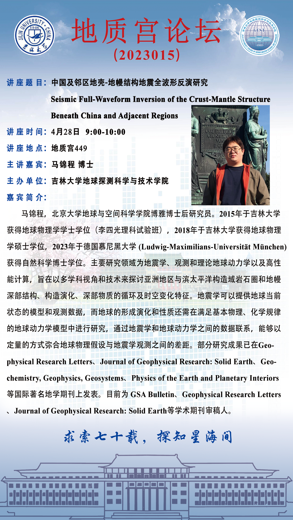 地学70周年·永利yl23411·地质宫论坛(2023015)—北京大学马锦程博士学术报告