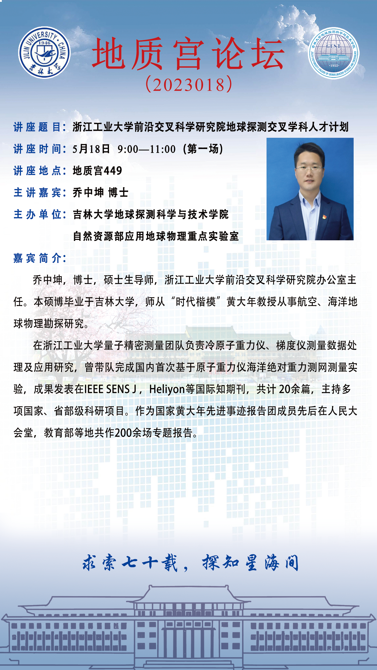 地学70周年·永利yl23411·地质宫论坛(2023018)—浙江工业大学前沿交叉科学研究院办公室主任乔中坤博士学术报告