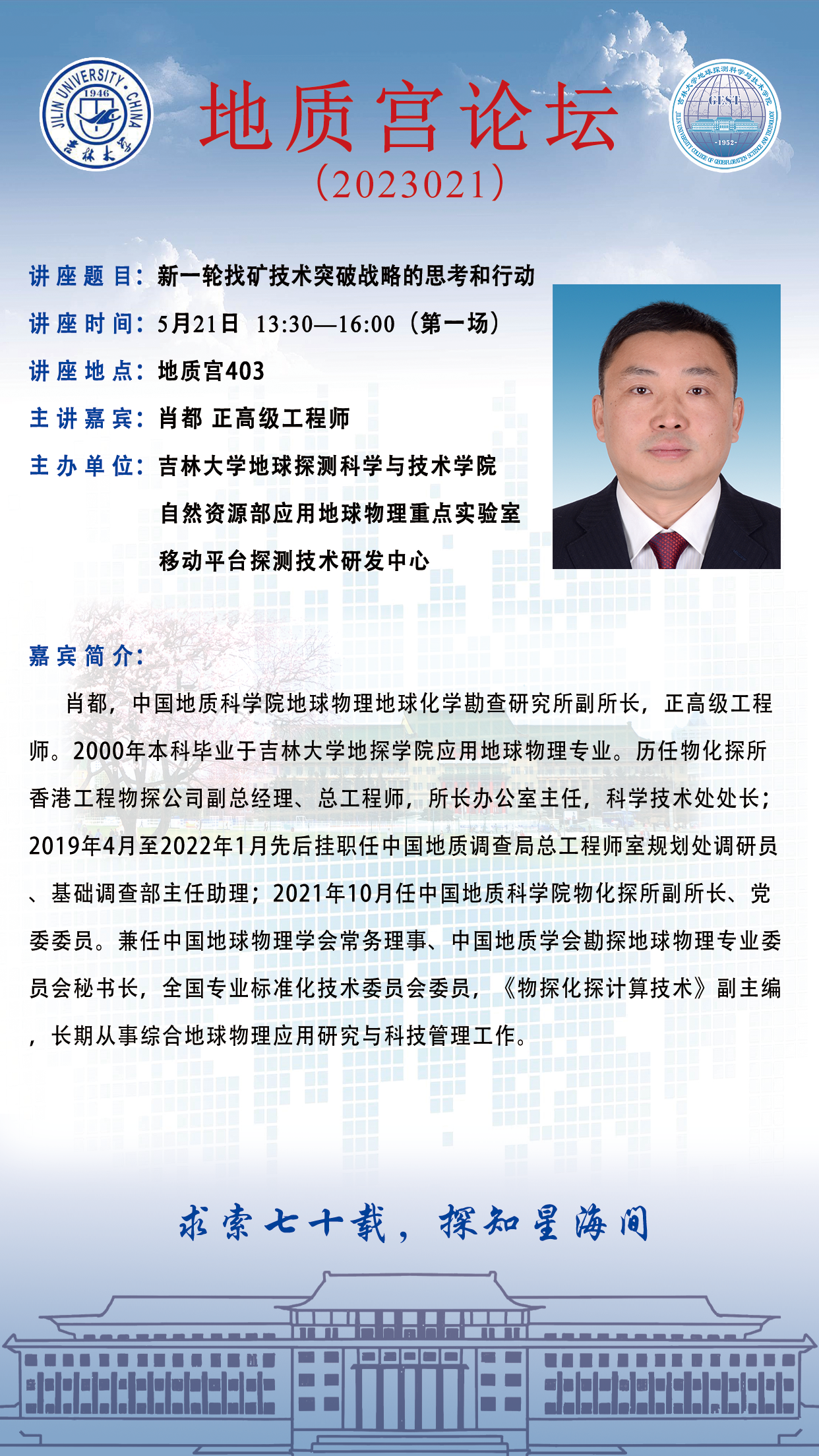 地学70周年·永利yl23411·地质宫论坛(2023021)—中国地质科公司地球物理化学勘查研究所肖都正高级工程师学术报告