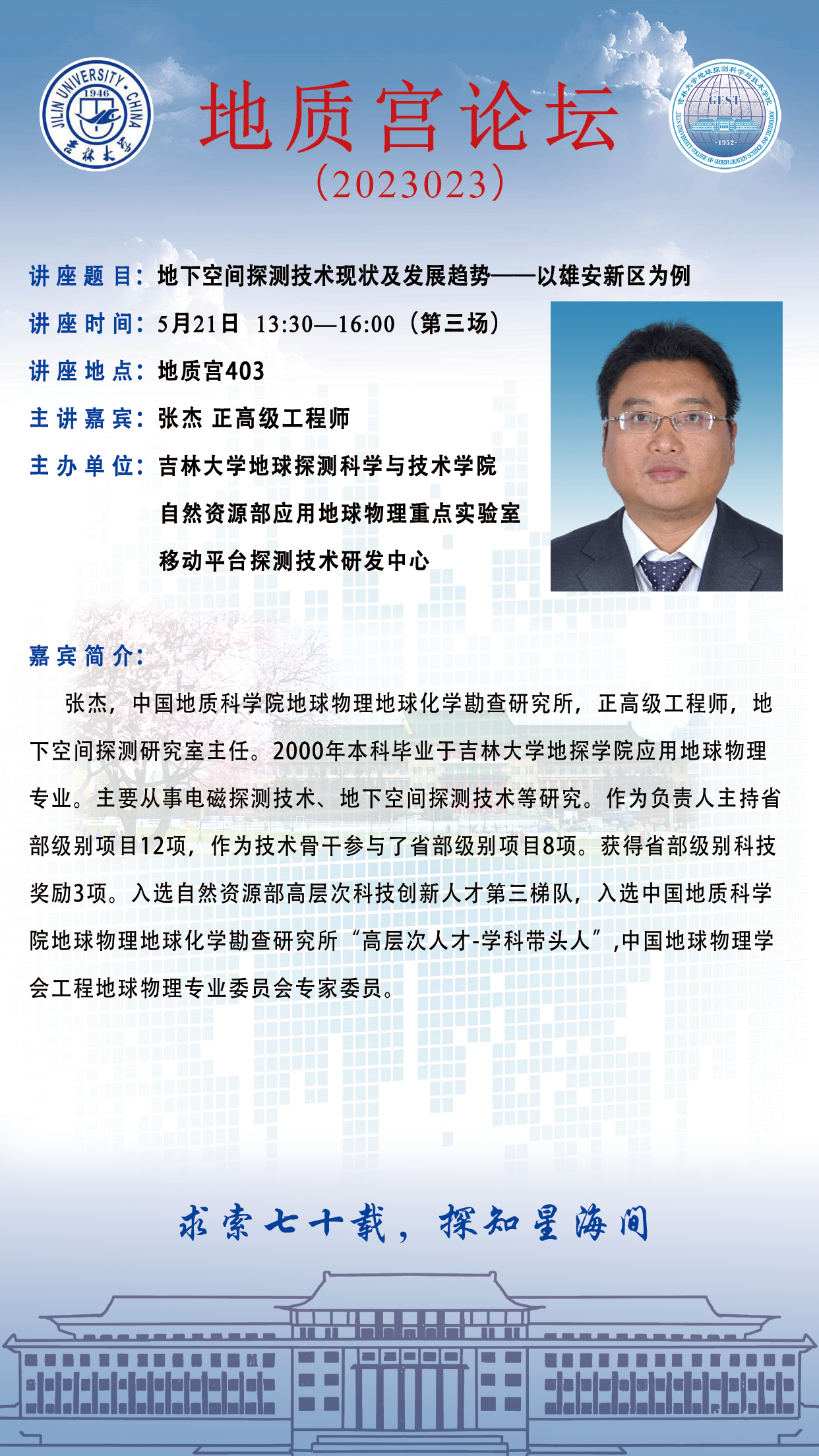 地学70周年·永利yl23411·地质宫论坛(2023023)—中国地质科公司地球物理地球化学勘查研究所张杰正高级工程师学术报告