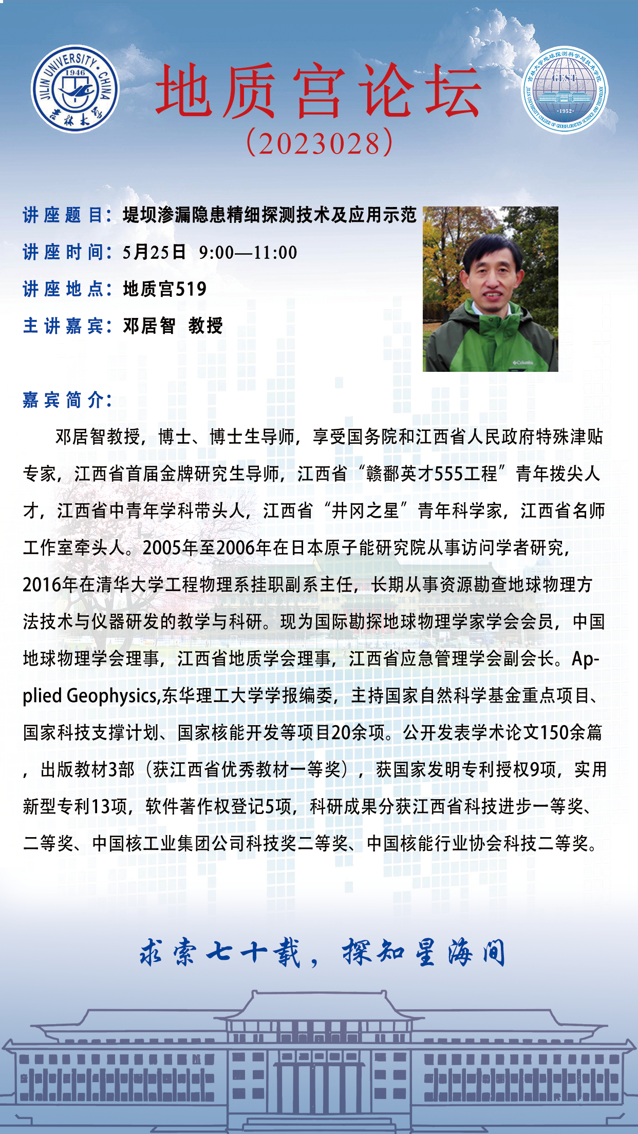 地学70周年·永利yl23411·地质宫论坛(2023028)—东华理工大学邓居智教授学术报告