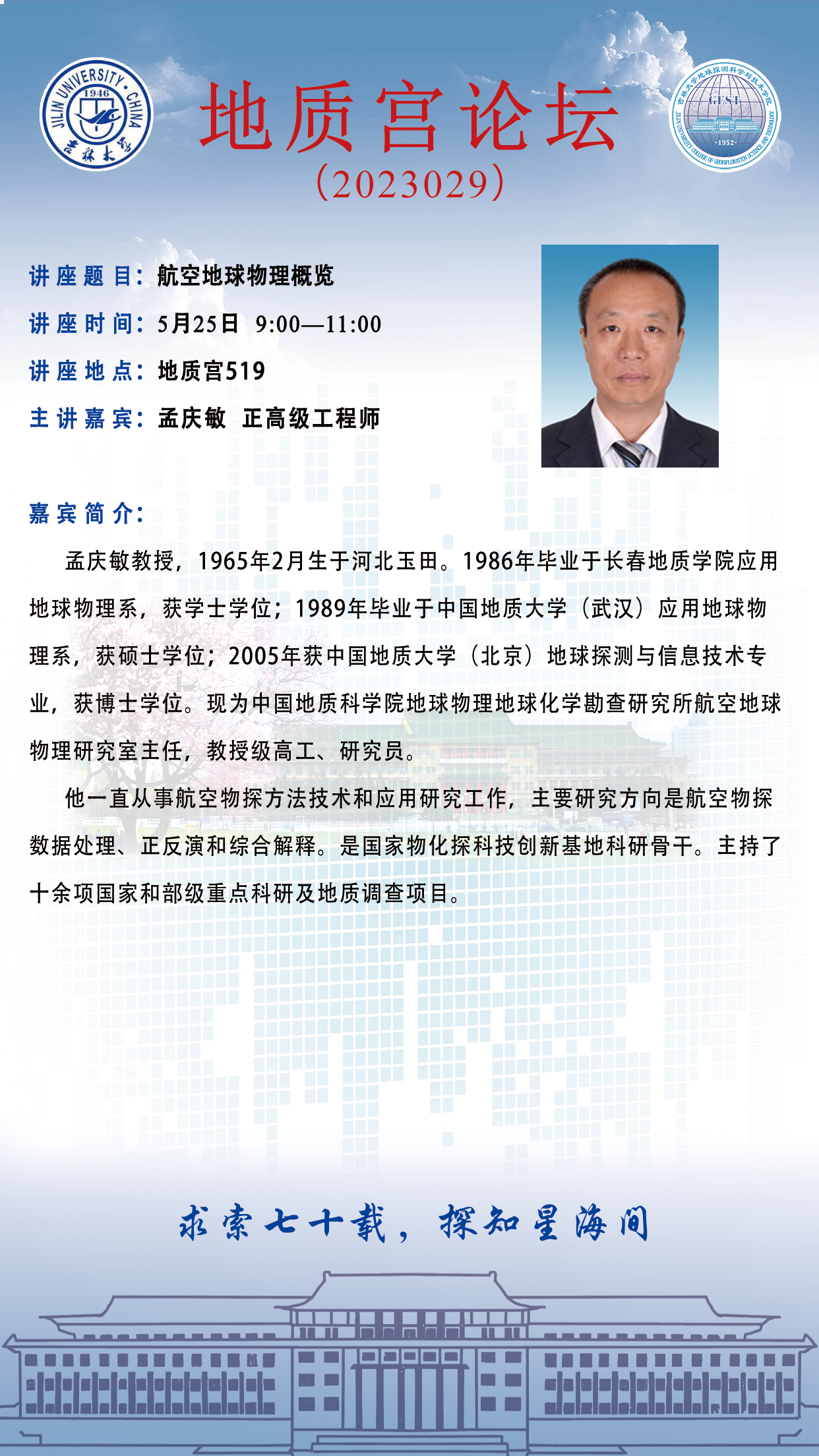 地学70周年·永利yl23411·地质宫论坛(2023029)—中国地质科公司地球物理地球化学勘查研究所孟庆敏正高级工程师学术报告
