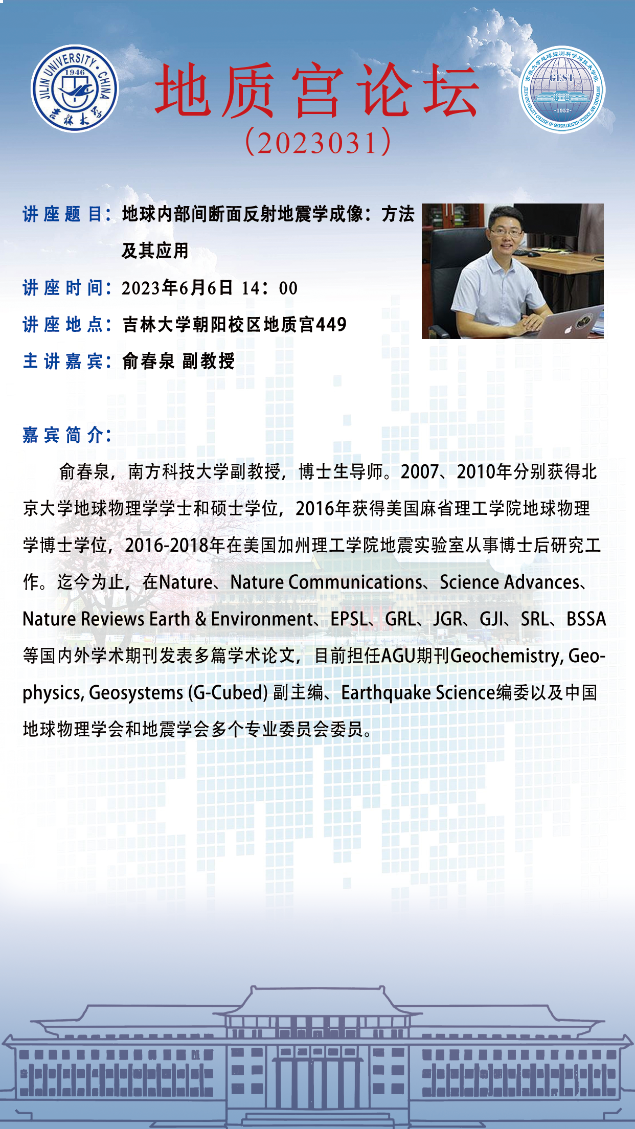 永利yl23411·地质宫论坛(2023031)—南方科技大学俞春泉副教授学术报告