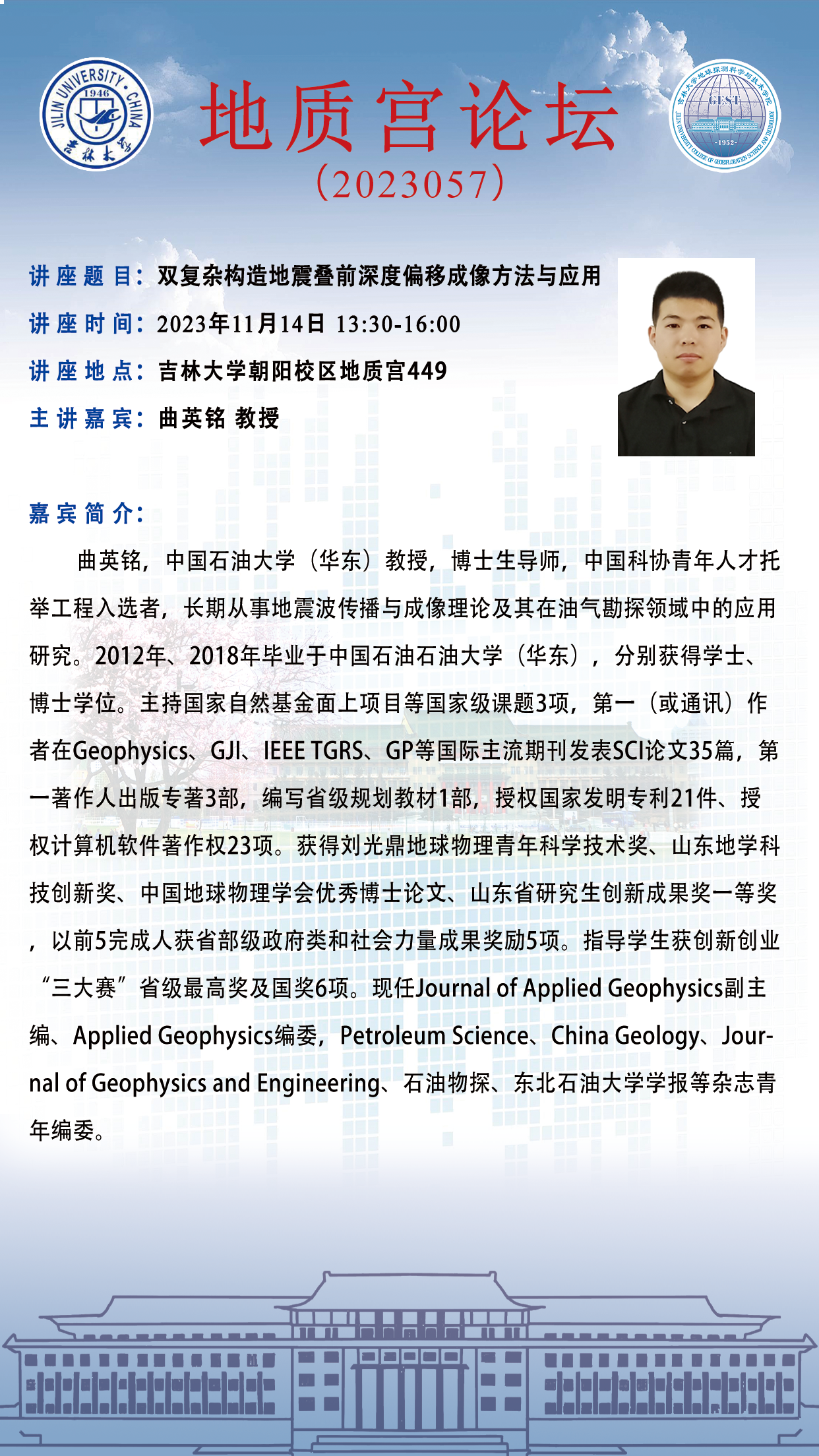 永利yl23411·地质宫论坛(2023057)—中国石油大学(华东)教授曲英铭博士学术报告