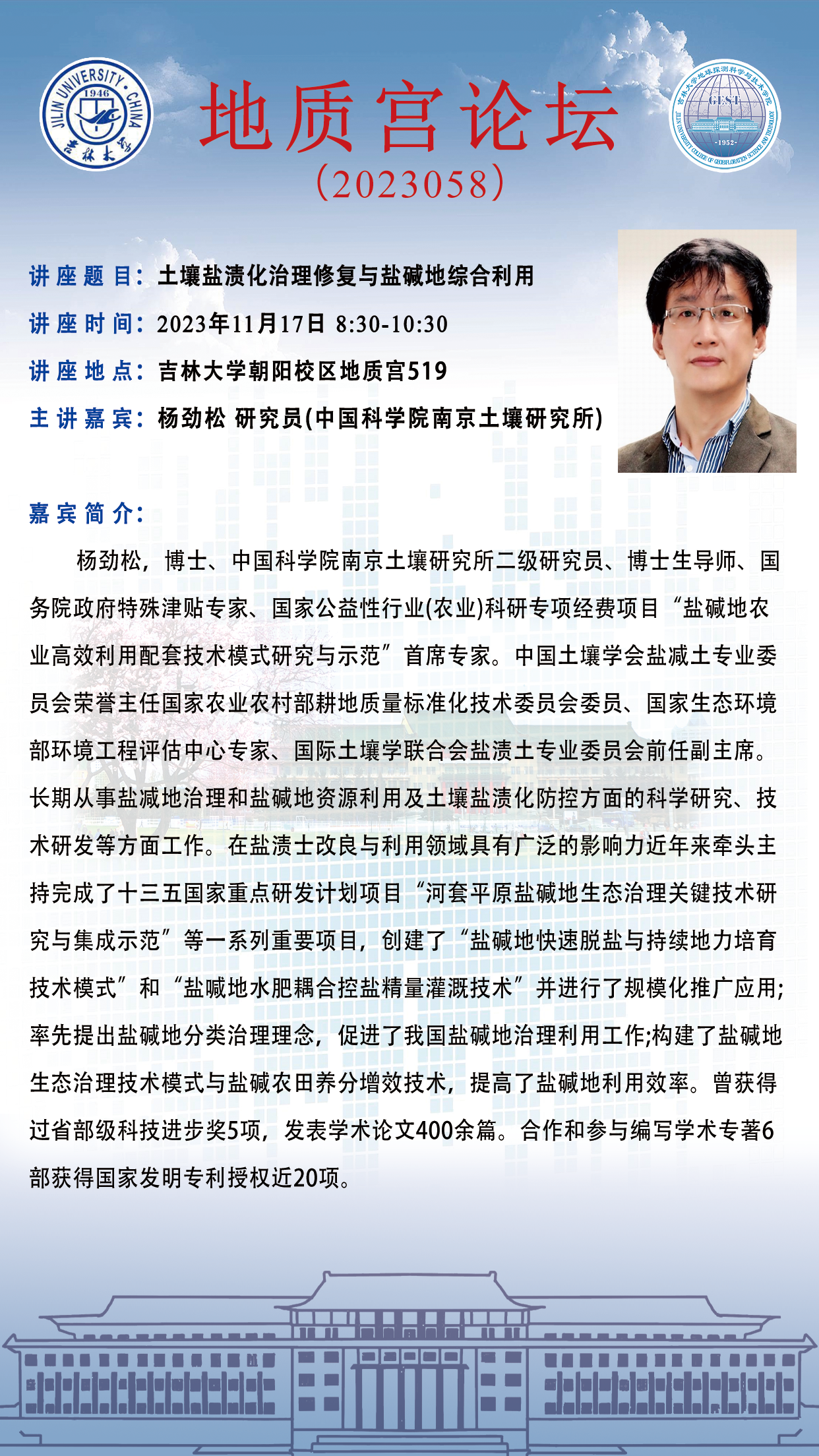永利yl23411·地质宫论坛(2023058)—中国科公司南京土壤研究所杨劲松研究员学术报告