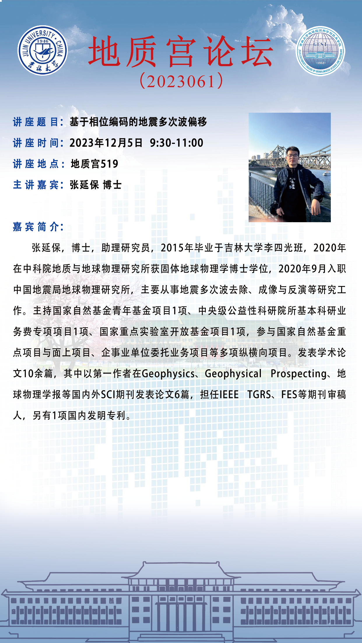 永利yl23411·地质宫论坛(2023061)—中国地震局地球物理研究所张延保博士学术报告