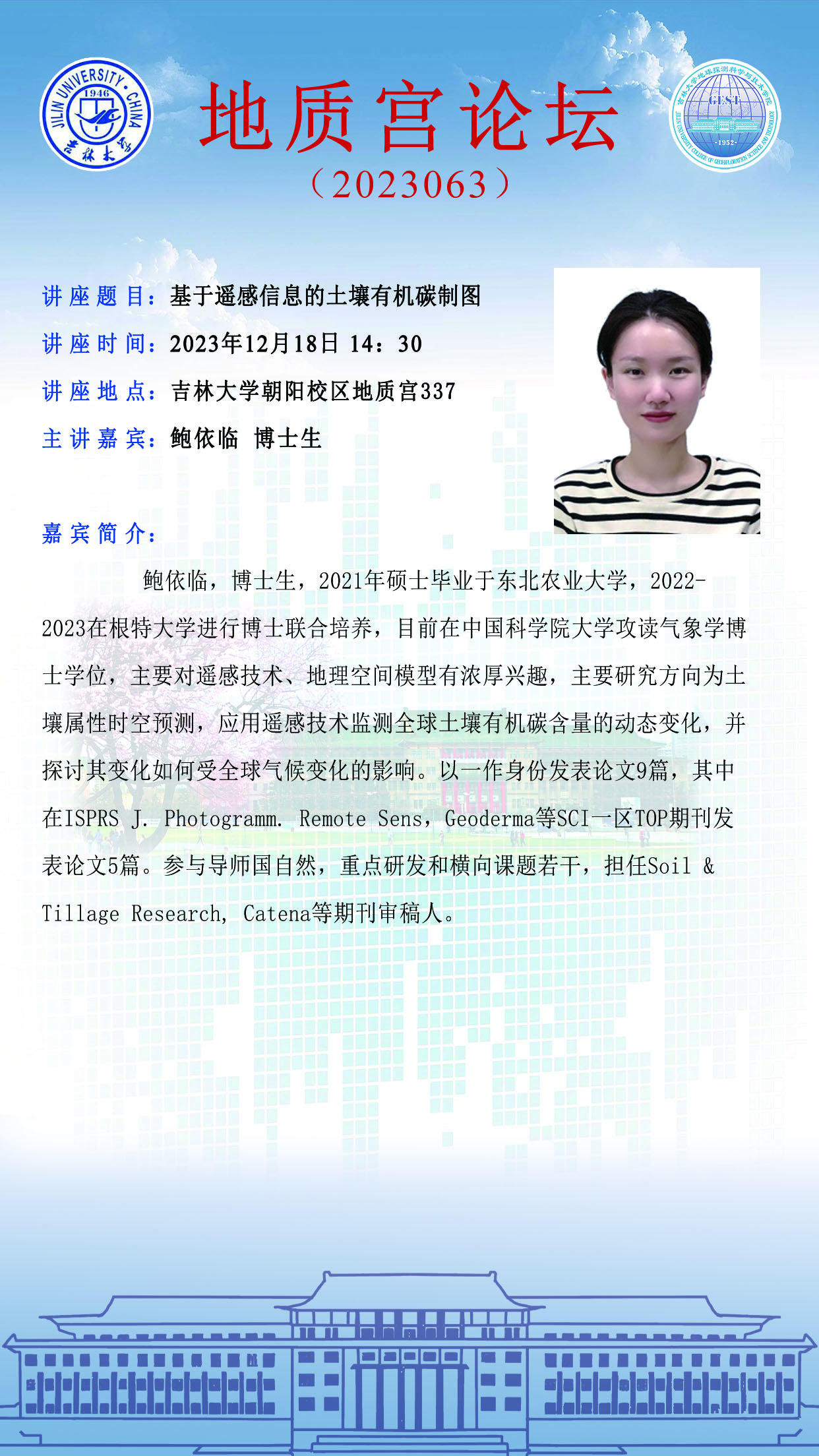永利yl23411·地质宫论坛(2023063)—中国科公司大学鲍依临博士生学术报告