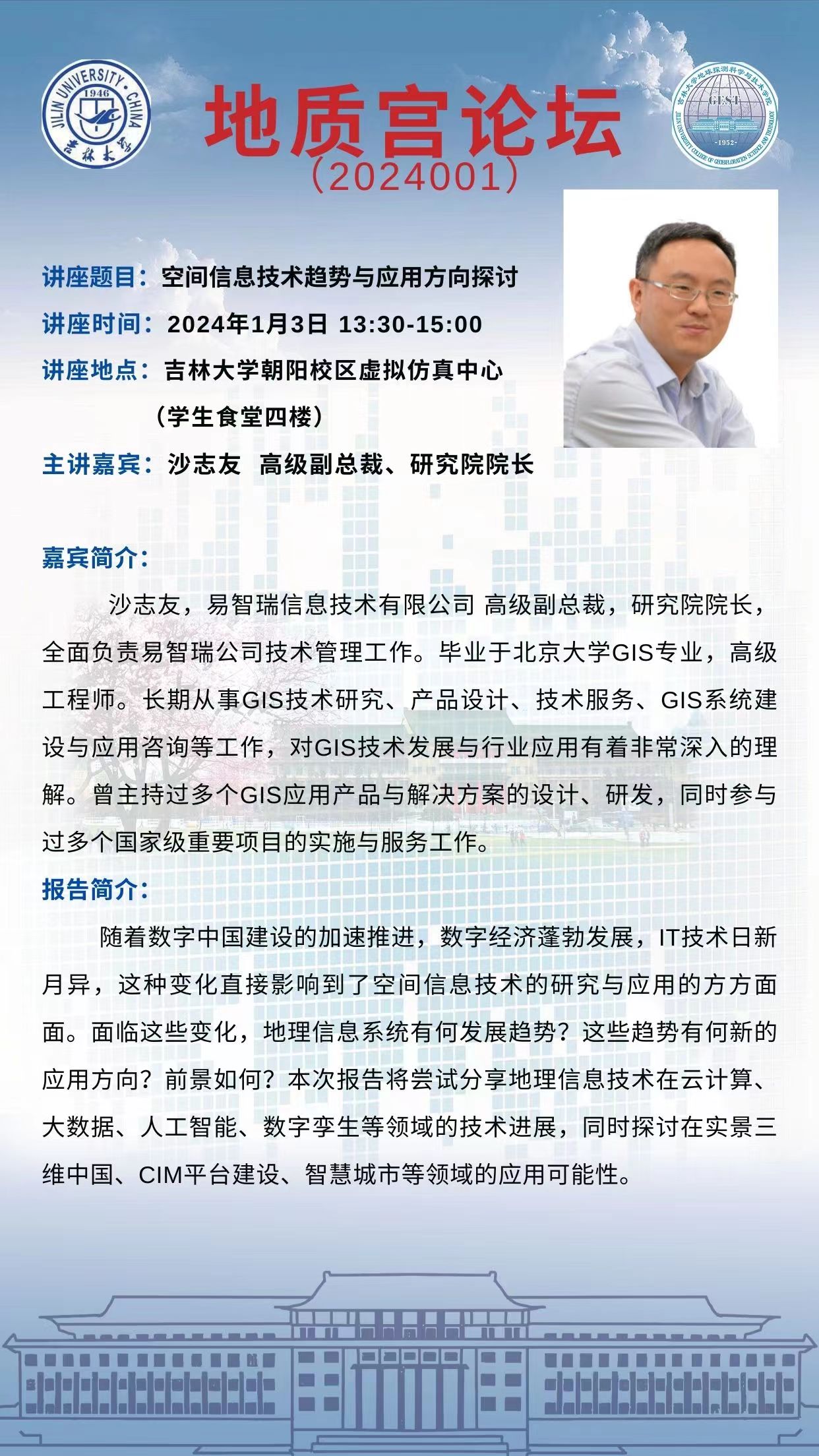 永利yl23411·地质宫论坛(2024001)—易智瑞信息技术有限公司高级副总裁沙志友学术报告