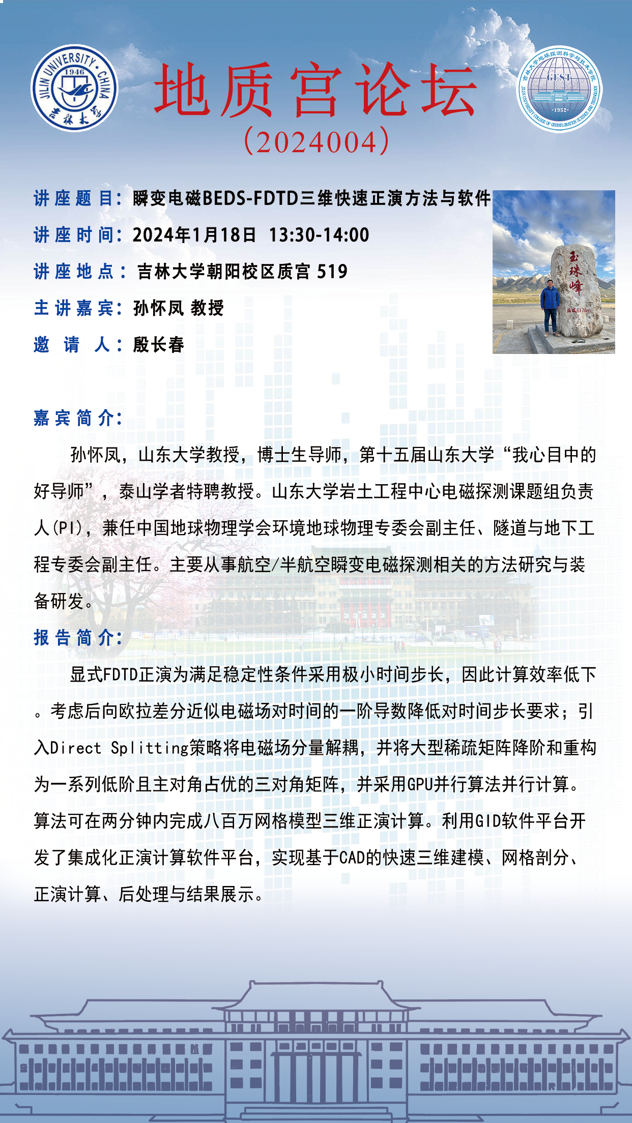 永利yl23411·地质宫论坛(2024004)—山东大学孙怀凤教授学术报告