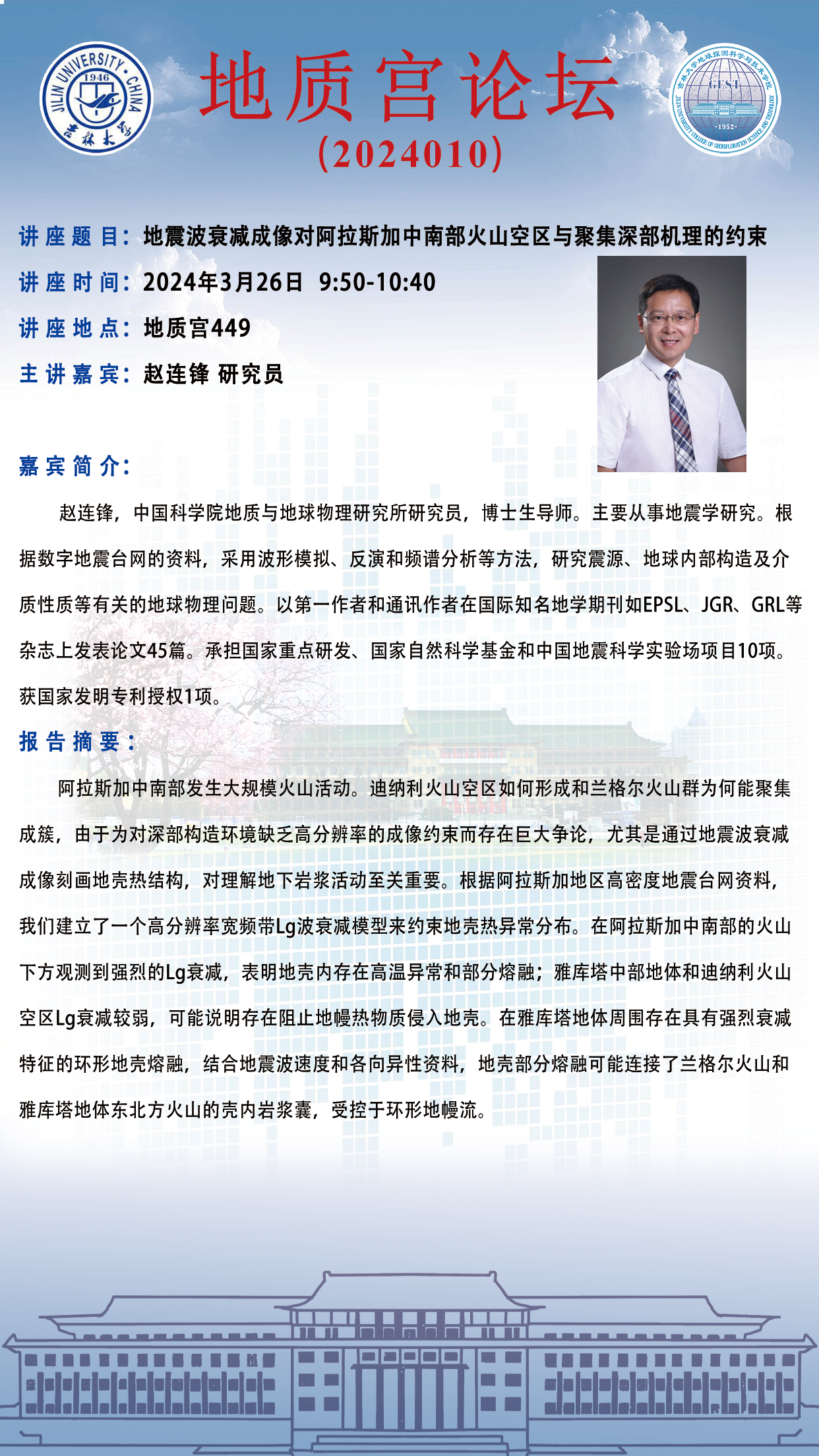 永利yl23411·地质宫论坛(2024010)—中国科公司地质与地球物理研究所赵连锋研究员学术报告