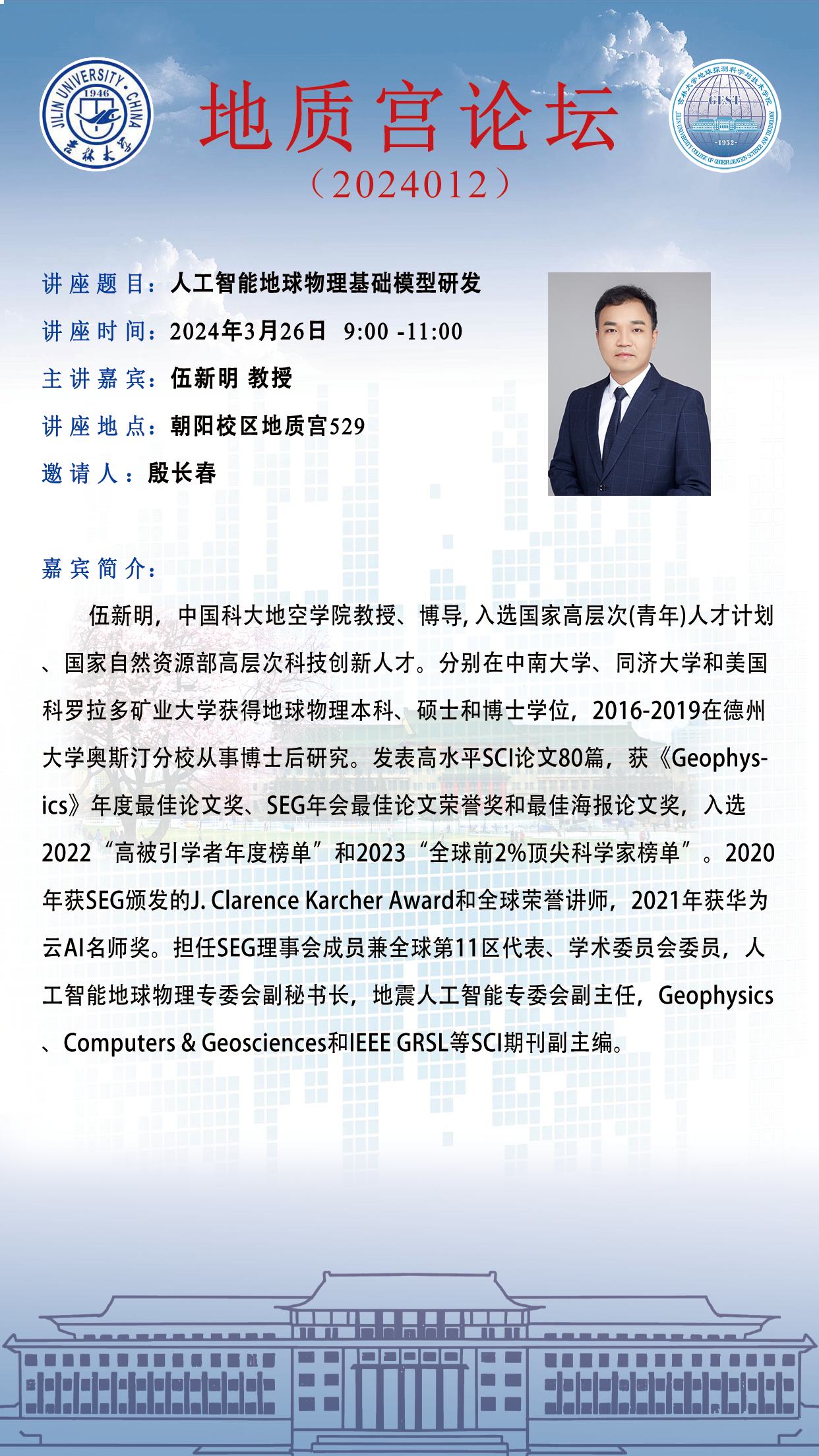 永利yl23411·地质宫论坛(2024012)—中国科大地空公司伍新明教授学术报告