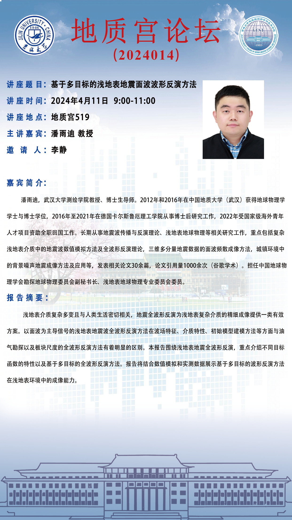 永利yl23411·地质宫论坛(2024014)—武汉大学测绘公司潘雨迪教授学术报告