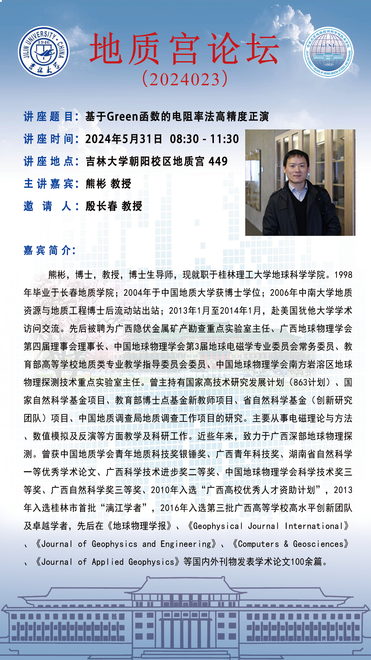 永利yl23411·地质宫论坛(2024023)—桂林理工大学熊彬教授学术报告