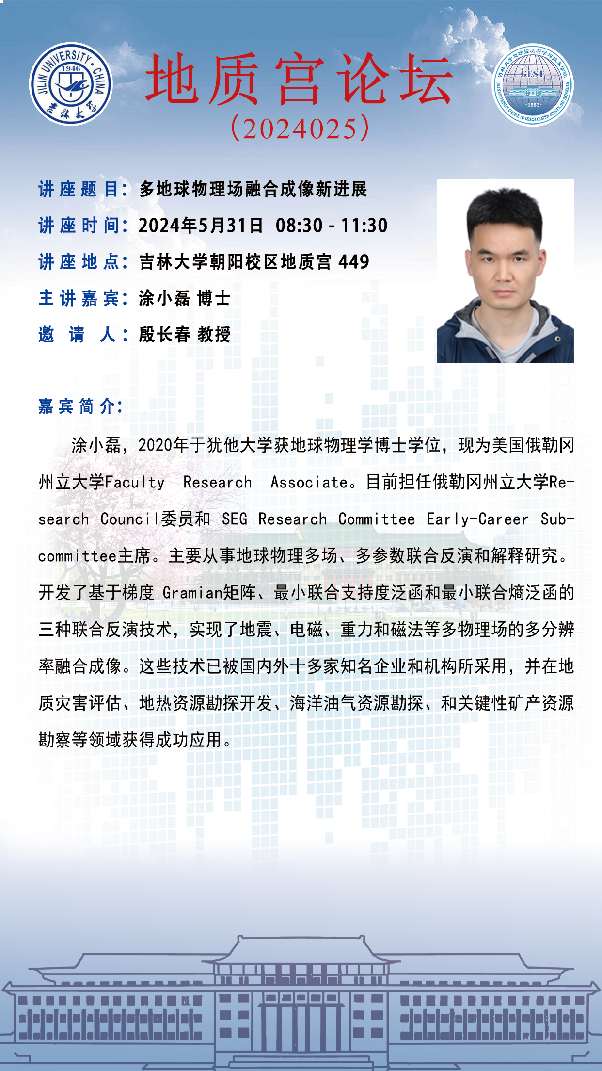 永利yl23411·地质宫论坛(2024025)—美国俄勒冈州立大学涂小磊博士学术报告