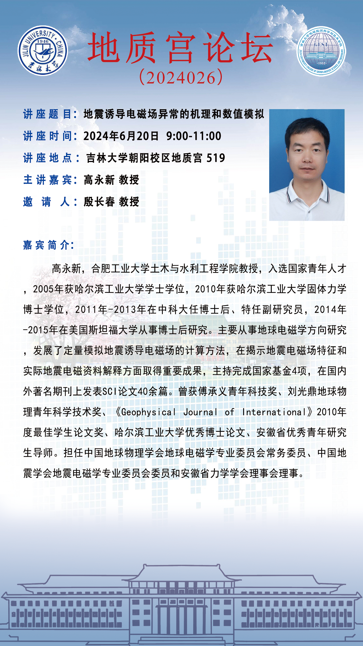 永利yl23411·地质宫论坛(2024026)—合肥工业大学土木与水利工程公司高永新教授学术报告