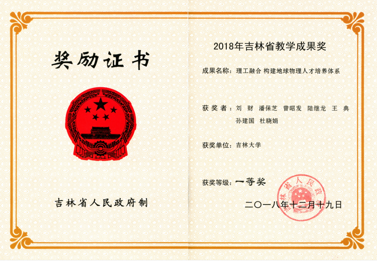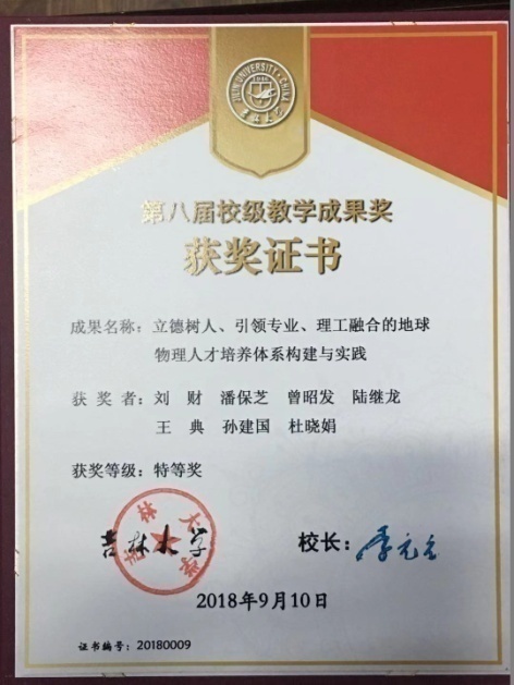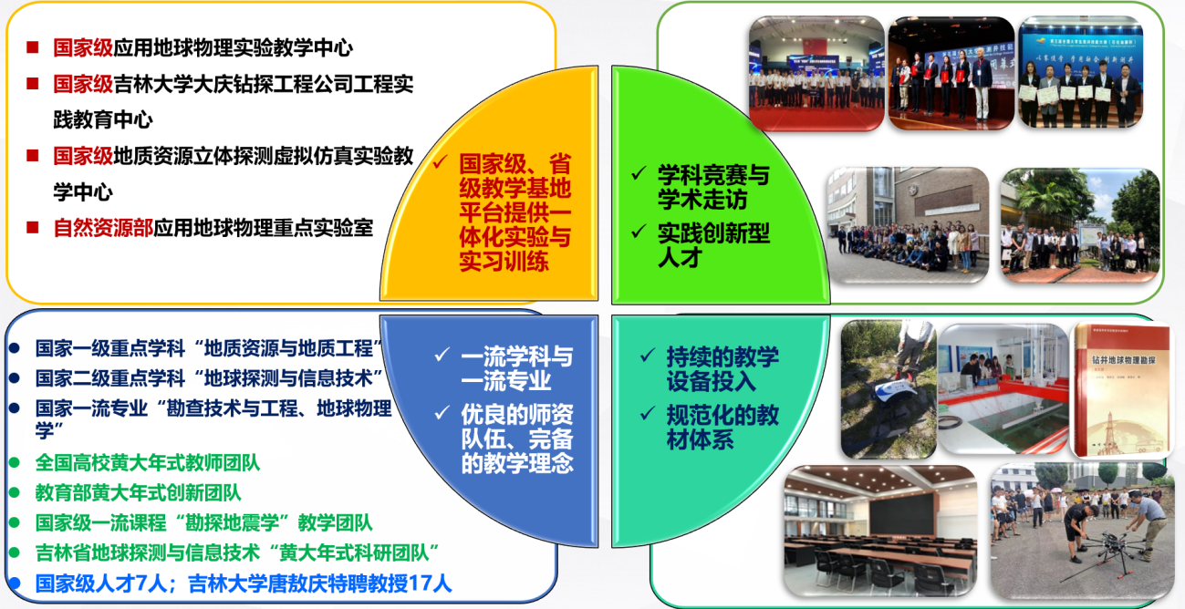 公司地球物理类人才培养经历了实践教学体系(2009年,吉林省教学成果一等奖)、卓越人才培养体系(2014年,吉林省教学成果一等奖)、理工融合人才培养体系(2018年,吉林省教学成果一等奖)的不断优化,形成了以科学家精神引领、先进培养理念育人、理科工科专业融合、优质教学资源优化、评价管理体系多元化等五个维度,以家国情怀、社会需求、创新能力为导向的地球物理类高质量人才培养体系,培养了一批有理想信念、创新能力强和国际视野广阔的一流人才。