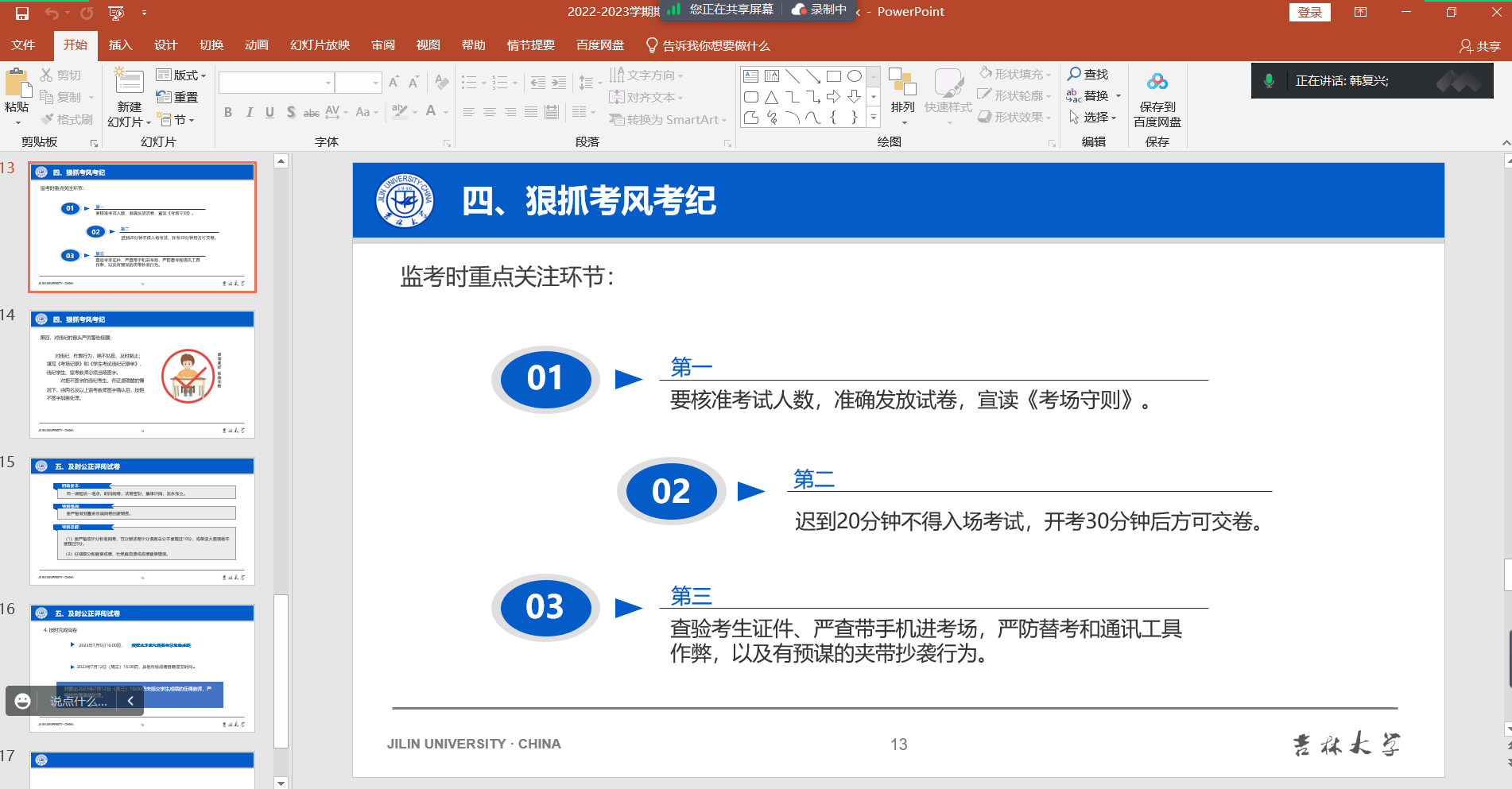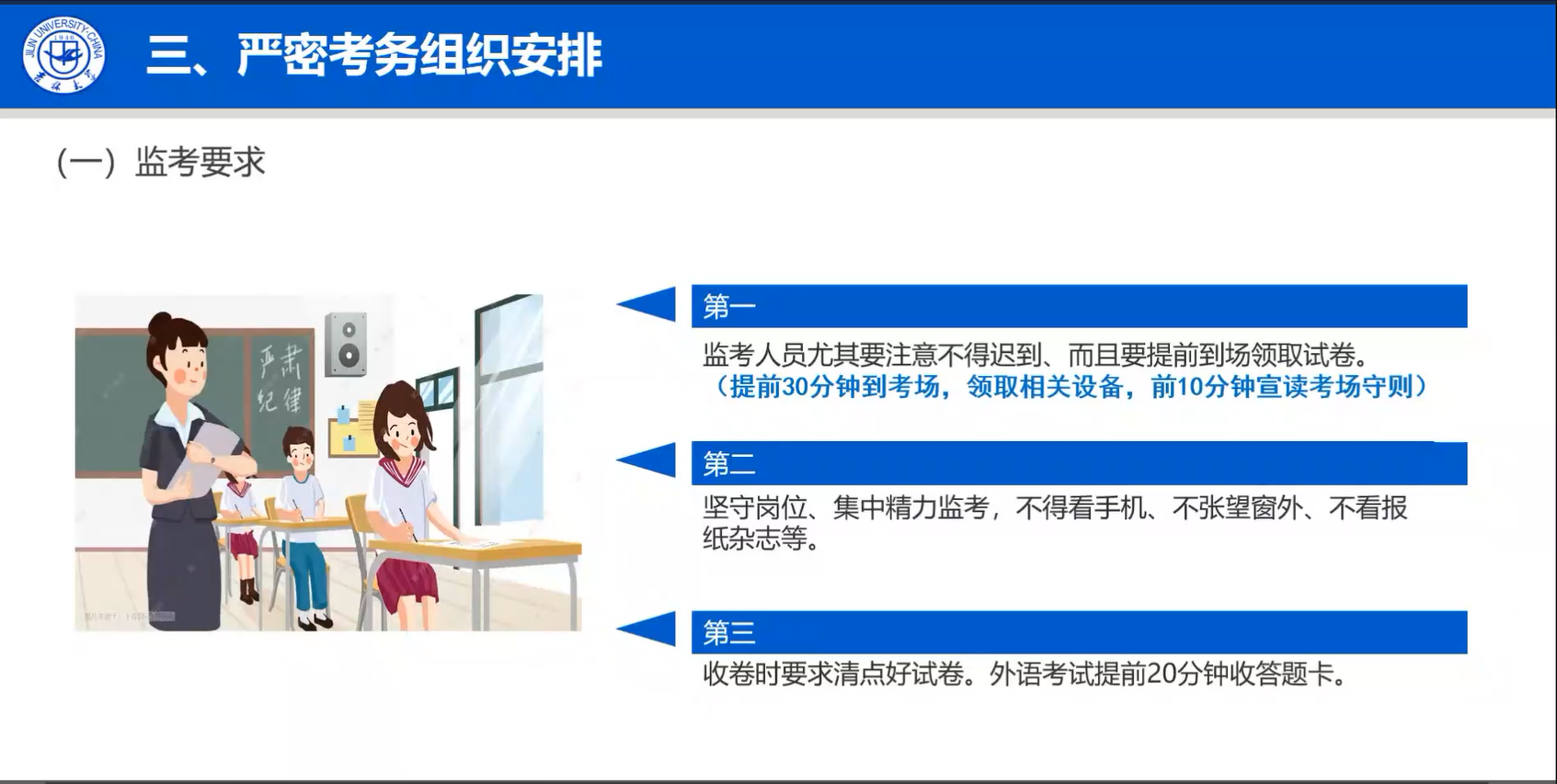 会议的第一部分,韩复兴副经理传达了公司《2022—2023学年第二学期期末考试工作会议暨考风考纪教育布置会议》的会议精神,明确了公司对于期末考试的相关要求。期末考试是本学期最后一项也是最重要的一项工作,考试的目的是检测员工的学习效果以及教师课堂教学的教学效果,作为未来教学改进的一项参考内容。对于期末考试的命题,要达到能够检测员工学习效果的目的,尽量避免死记硬背的题目,重点考核员工应用所学知识的能力。监考工作要认真负责,严格遵守《永利yl23411监考守则》,对于考场的违纪现象绝不姑息。期末考试期间也是员工工作的重点,考前做好本科生的动员,强调考场纪律,督促员工做好考前复习,营造健康公平的备考及考试环境。