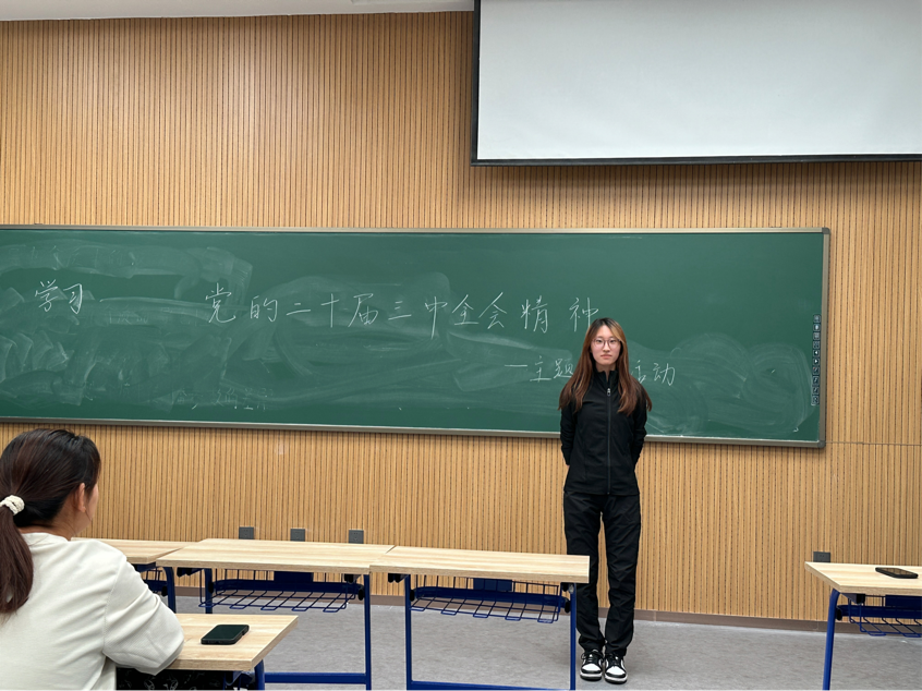 为了深入学习宣传贯彻党的二十届三中全会精神,提升团员们的思想政治素养和对国家重大政策的理解与认同。永利yl23411232322班团支部于11月14日下午,在李四光楼110教室成功组织了一次以“学习党的二十届三中全会精神”为主题的团日活动。本次活动由团支部书记毛雨可主持,23级2班团支部全体人员和辅导员王洪宇老师共同参加此次活动。