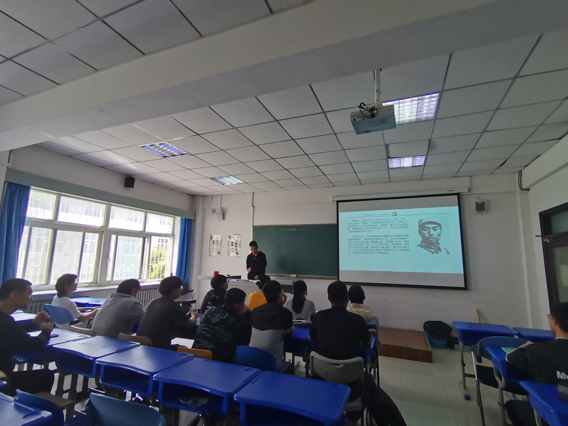 本次团活分为四个部分,分别为星火燎原,艰苦奋斗精神,理想照耀中国和分享感悟与奋斗目标。首先负责星火燎原部分的赵晓威同学为班级同学讲解了优秀党员杨靖宇的故事,生动形象的讲解了共产党用无畏无私、不屈不挠的精神挺起了民族的脊梁。斗争艰苦惨烈,无数英雄牺牲,他们义无反顾、勇往直前,留下一首首气壮山河、可歌可泣的英雄赞歌。艰苦奋斗精神部分的讲解由高明月同学负责,她从艰苦奋斗精神在当代的体现出发,用彭士禄老先生的故事,去探究我们青年人该如何发扬艰苦奋斗精神,她认为艰苦奋斗精神在现代更注重于精神层面的艰苦努力,吃苦耐劳。而艰苦奋斗精神对于青年人来讲,更意味着一种责任的承担和成长。理想照耀中国的讲解由刘佳伟同学负责,他从改革开放时期出发,讲解当时人们所面对的挑战,他认为中国梦的成就在于将民族的理想照耀到每个人身上,他为大家讲解了改革开放的伟大开创者孔繁森先生的故事。孔繁森先生用真挚的爱民之情,赤诚的为民之心,强烈的富民之愿,谱写了具有最朴素的普世价值和人文情怀,闪烁着不朽的文明之光、人性之光和理想之光。在活动最后,大家思考之后写下了自己的感悟和收获。