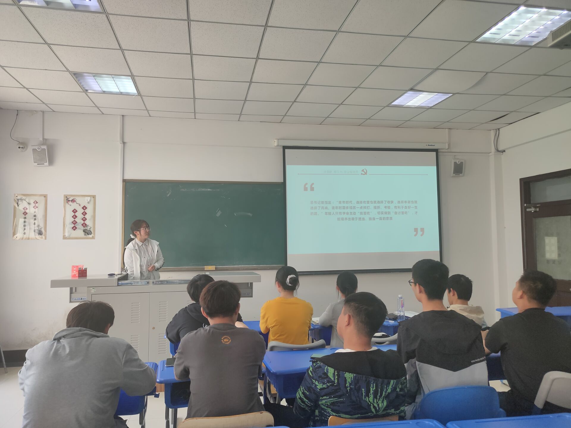 在建党100周年来临之际,为深化同学们对“四史”的认识,弘扬爱国主义精神,引导班级同学向党靠拢,筑强国梦,2020级9班团支部于5月13日在经信A103开展了“青春向党,奋斗强国”主题团日活动,9班全体同学参加。