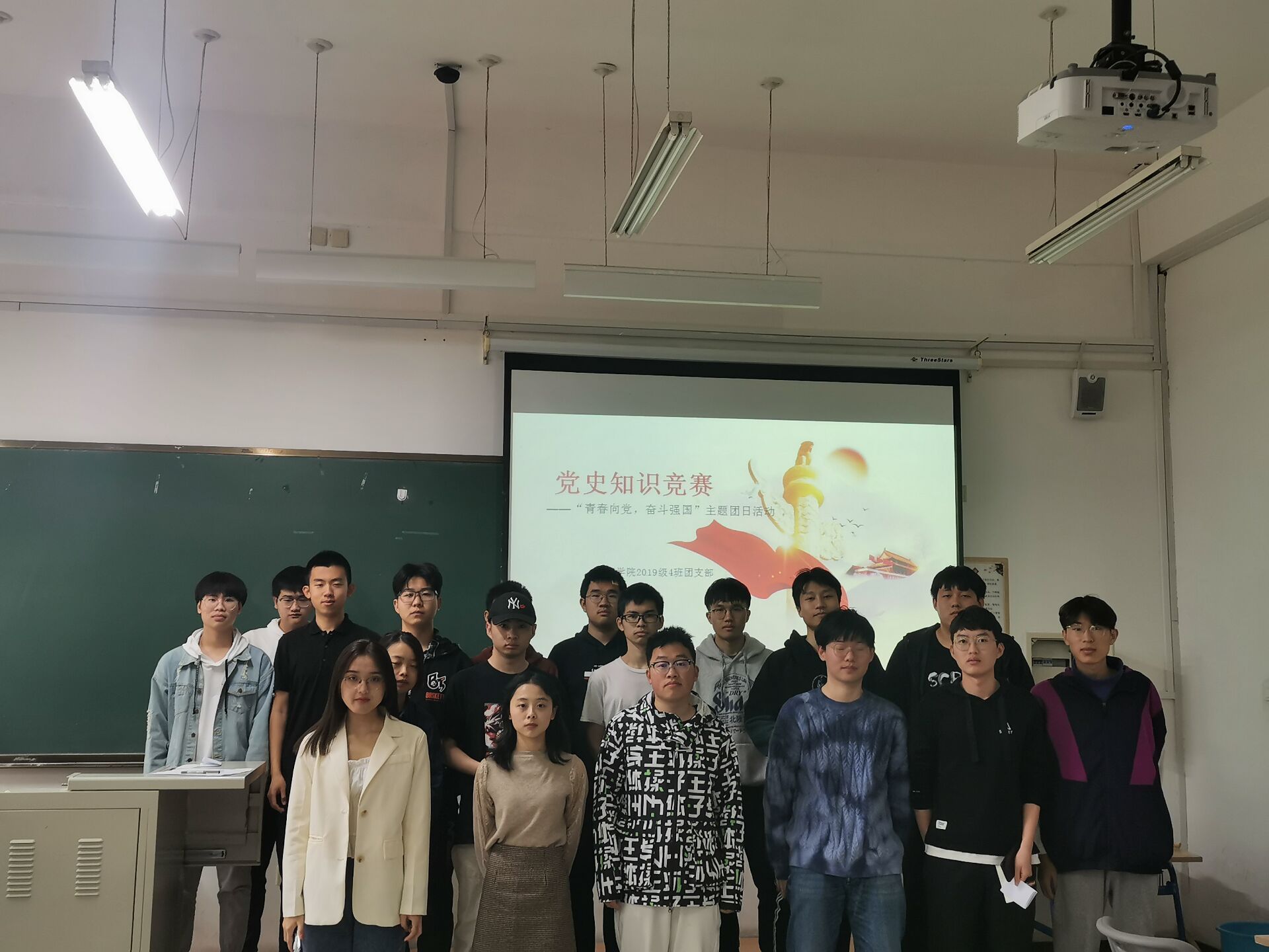 为迎接中国共产党百年华诞,铭记党的历史,讴歌党的光辉历程,2019级4班团支部于李四光楼110举办“青春向党,奋斗强国”主题团日活动。