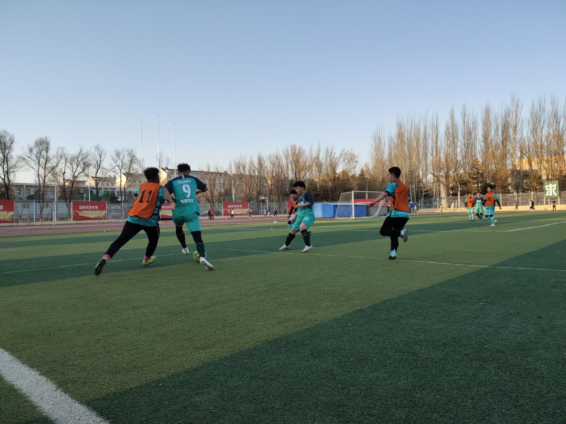热身阶段双方球员都蓄势待发,裁判一声哨响,比赛开始。球员们互相配合疾驰在球场上。在公司与新能源的比赛中,上半场我方组织失利,对方球员拿下单刀进球,任意球破门。然而公司的足球健将们并没有因此气馁,反而愈挫愈勇,在下半场中少年们重整旗鼓,热血再燃。在我方球员的共同努力下,伊力扎提精准点射,中场一球世界波远射入门成功扳回一局。赛点时刻,乃吉木丁一记大力补射破门拿下关键比分。最终公司以3:2的比分取得胜利。