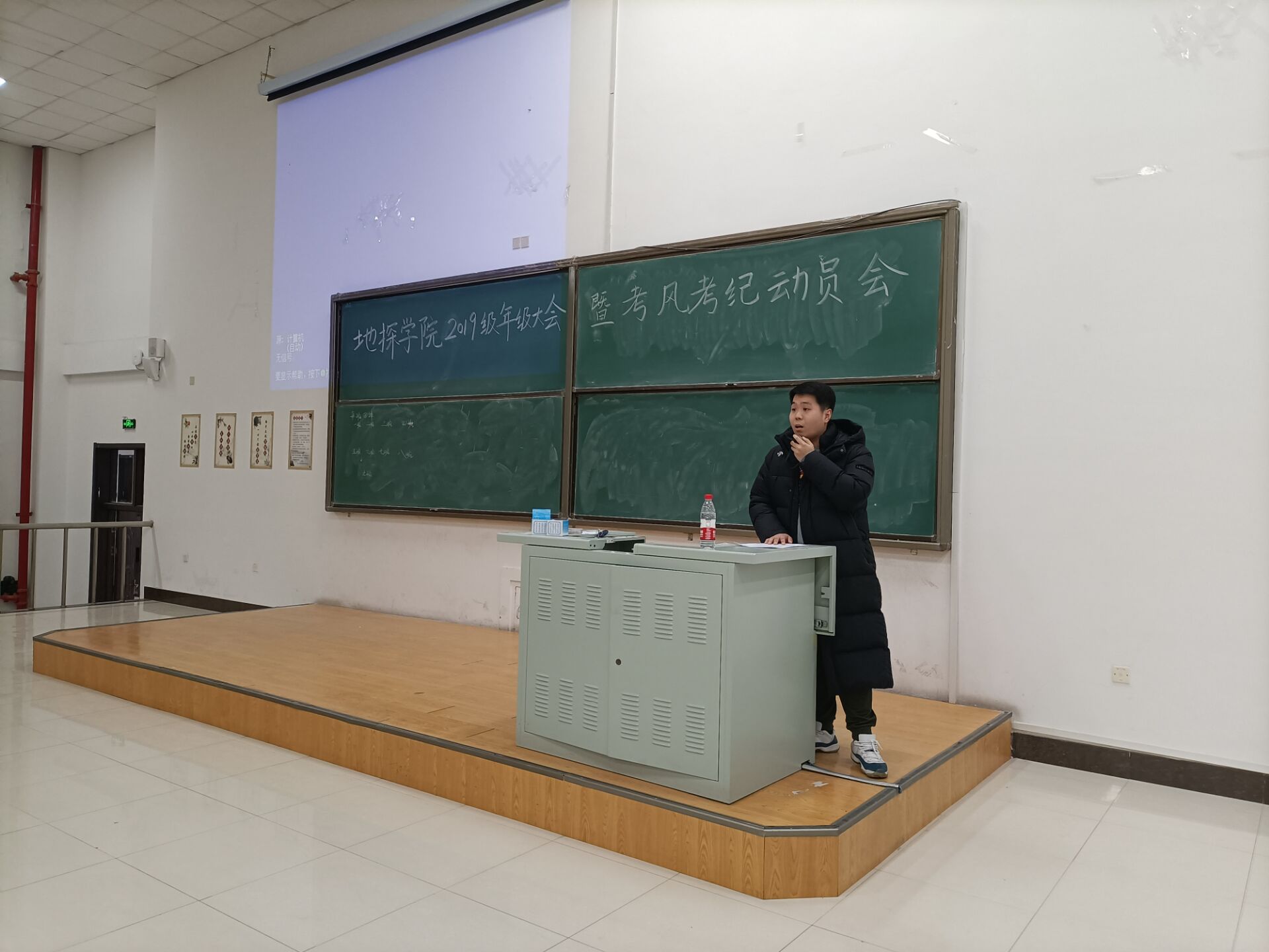 期末考试即将来临,为了严肃考风考纪,加强对员工的诚信教育,从根源上杜绝考试作弊现象,为同学们营造良好的学习和考试氛围。12月15日,永利yl234112019级辅导员朱奕先老师在李四光楼第二阶梯教室召开了2019级年级大会暨考风考纪动员会。