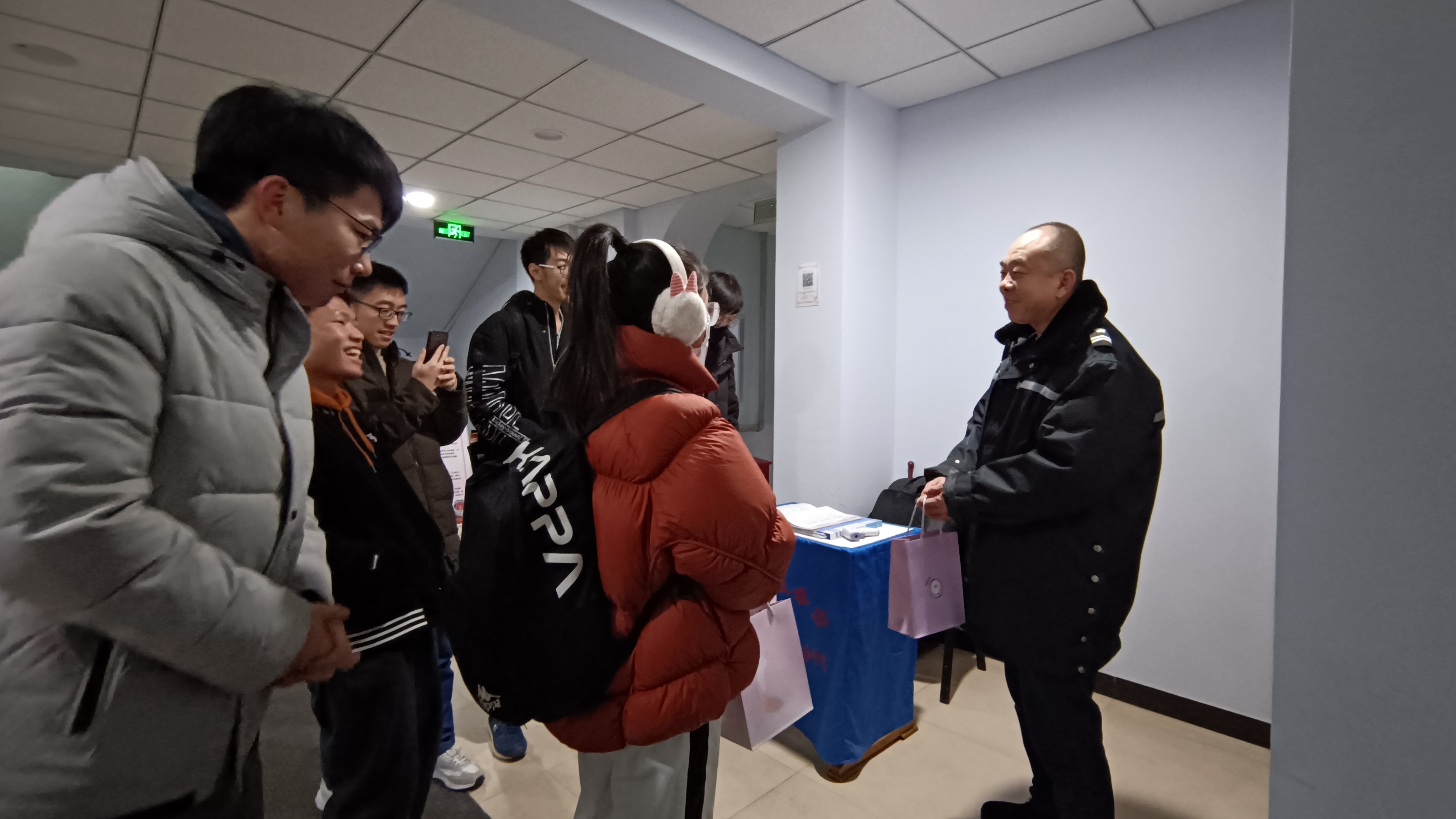 中心校区由团委社工部张懿韬与武永娜两位同学将志愿者们分组并分别担任组长。同学们统一在李四光楼大厅集合后开始了此次活动。与此同时,朝阳校区的志愿者们以及永利yl23411“爱心引力”青年志愿者协会会长刘羿轩同学一行有序的开始了此次活动。接下来,每位同学为教学楼值班安保人员及环卫工人、门口守卫人员、宿舍值班人员等“守夜人”写下真诚的祝福,并送给他们手套,口罩等物品,让守夜人在寒夜里感受到如春的温暖,给他们的冷夜添一件暖心无形之衣。全体志愿者也在送完爱心后与守夜人合影留念。