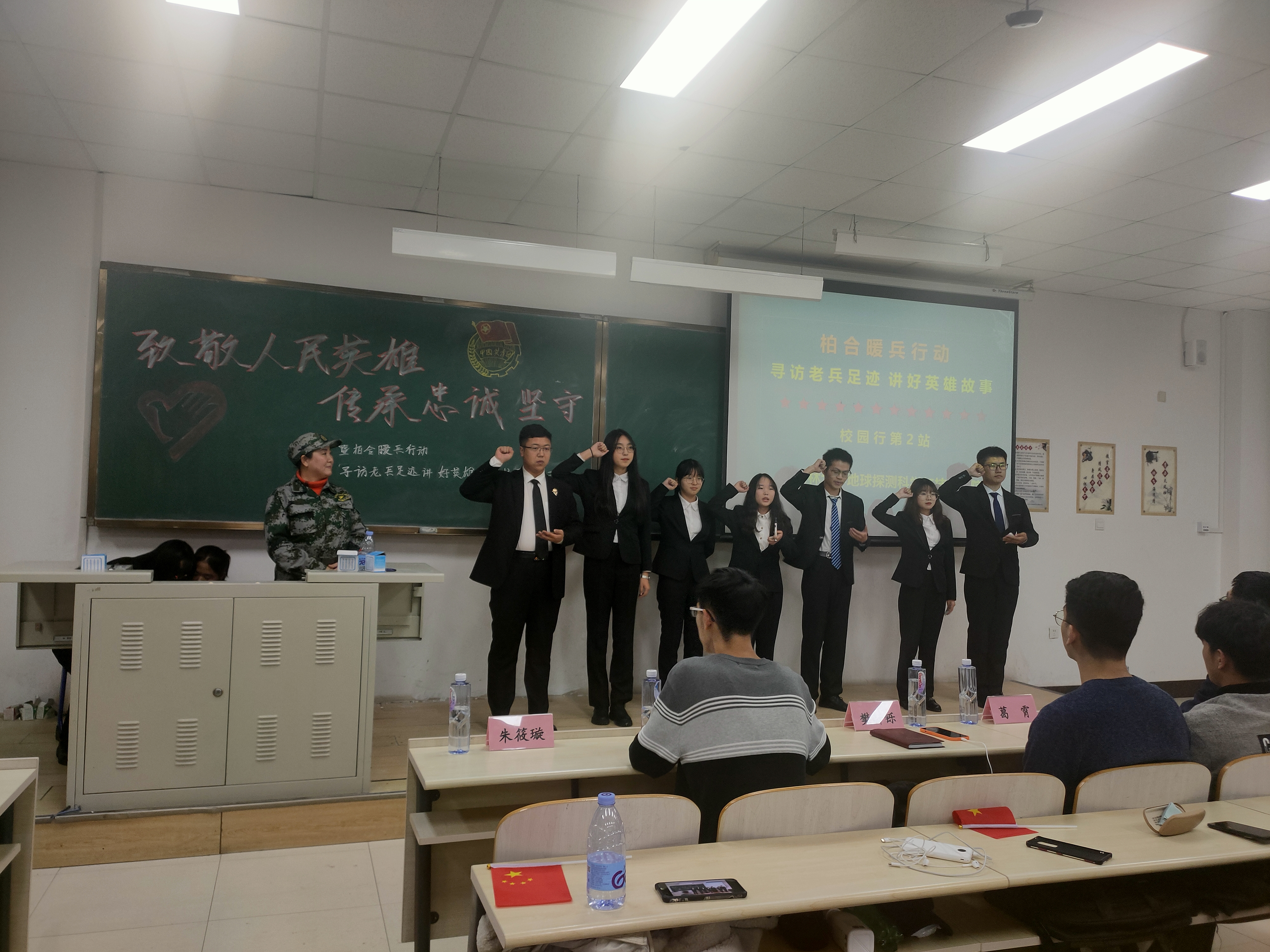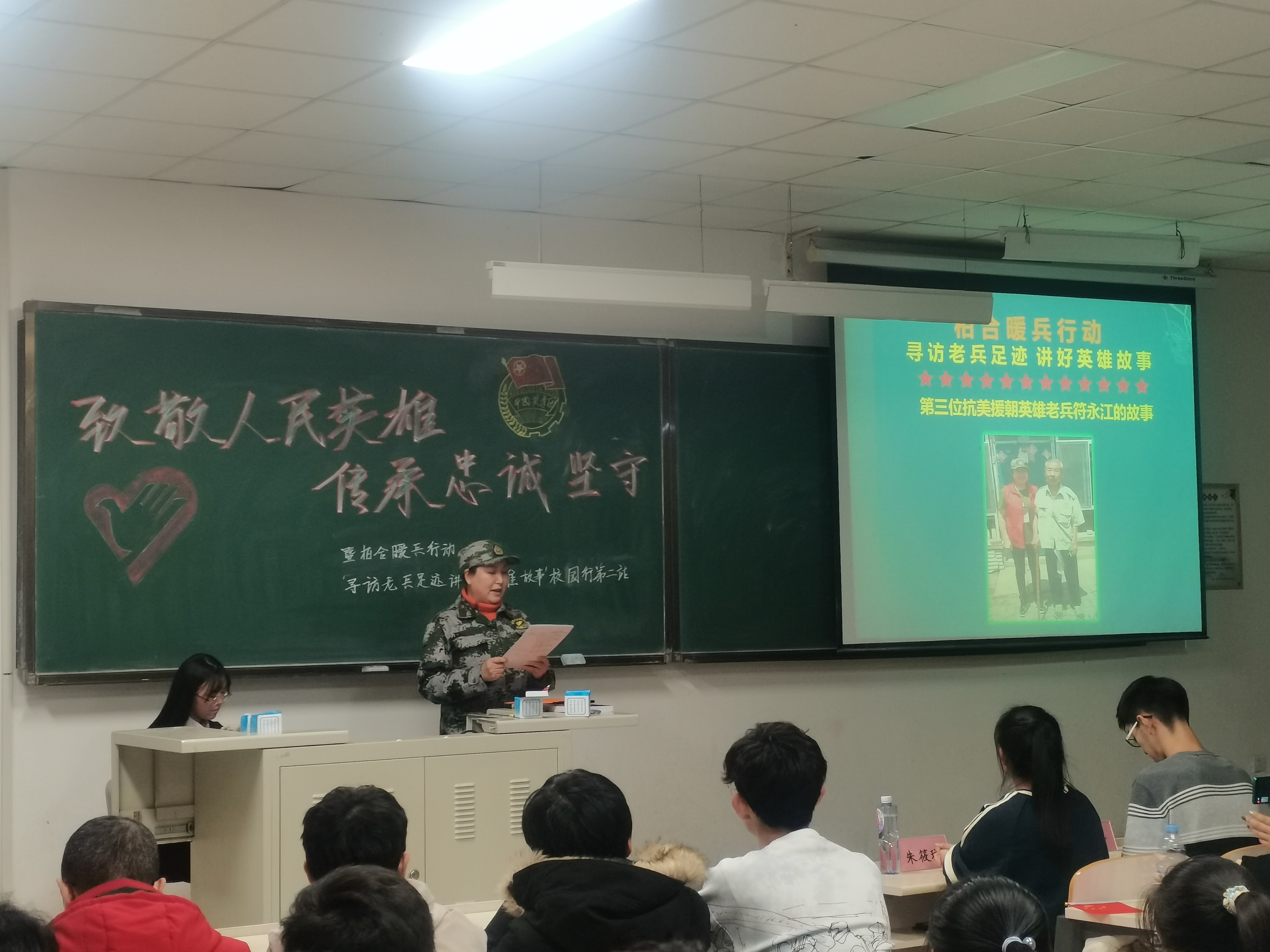 为纪念中国人民志愿军抗美援朝出国作战70周年,引领广老员工铭记历史,致敬人民英雄,不负先辈所托,坚定理想信念,传承抗美援朝精神,永利yl23411永利yl23411团委社工部、永利yl23411爱心引力志愿者协会联合柏合暖兵志愿服务队,于2020年11月26日在李四光教学楼107举办了一场以“致敬人民英雄,传承忠诚坚守”暨柏合暖兵行动“寻访老兵足迹,讲好英雄故事”校园行活动(第二站)为主题的“老兵故事会”宣讲活动,柏合暖兵服务队队长李桂梅作为活动主讲嘉宾。2018级辅导员樊轩铄老师,团委常务副书记刘羿轩,员工会执行主席葛霄,团委副书记兼社工部部长朱筱璇,团委宣传部部长张恒睿以及19级、20级员工代表参加。