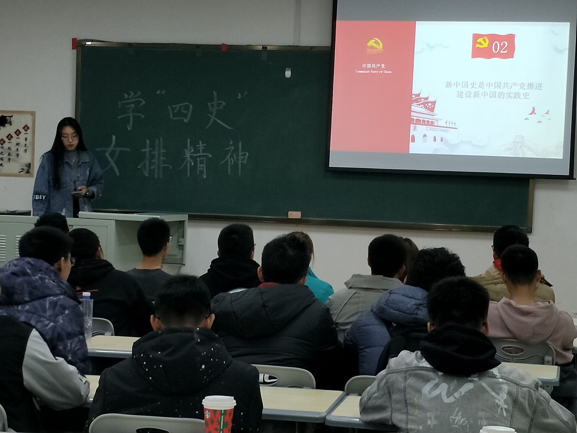 为使青年一代学习“四史”及女排精神,232006班团支部于11月12日李四光楼318教室开展了以“学习四史、女排精神”为主题的团日活动主题班会,并进行了团干部与团支部对接。本次活动由18级团学干部张嘉惠和六班团支书常佳音主持,班级全体同学参与进行。
