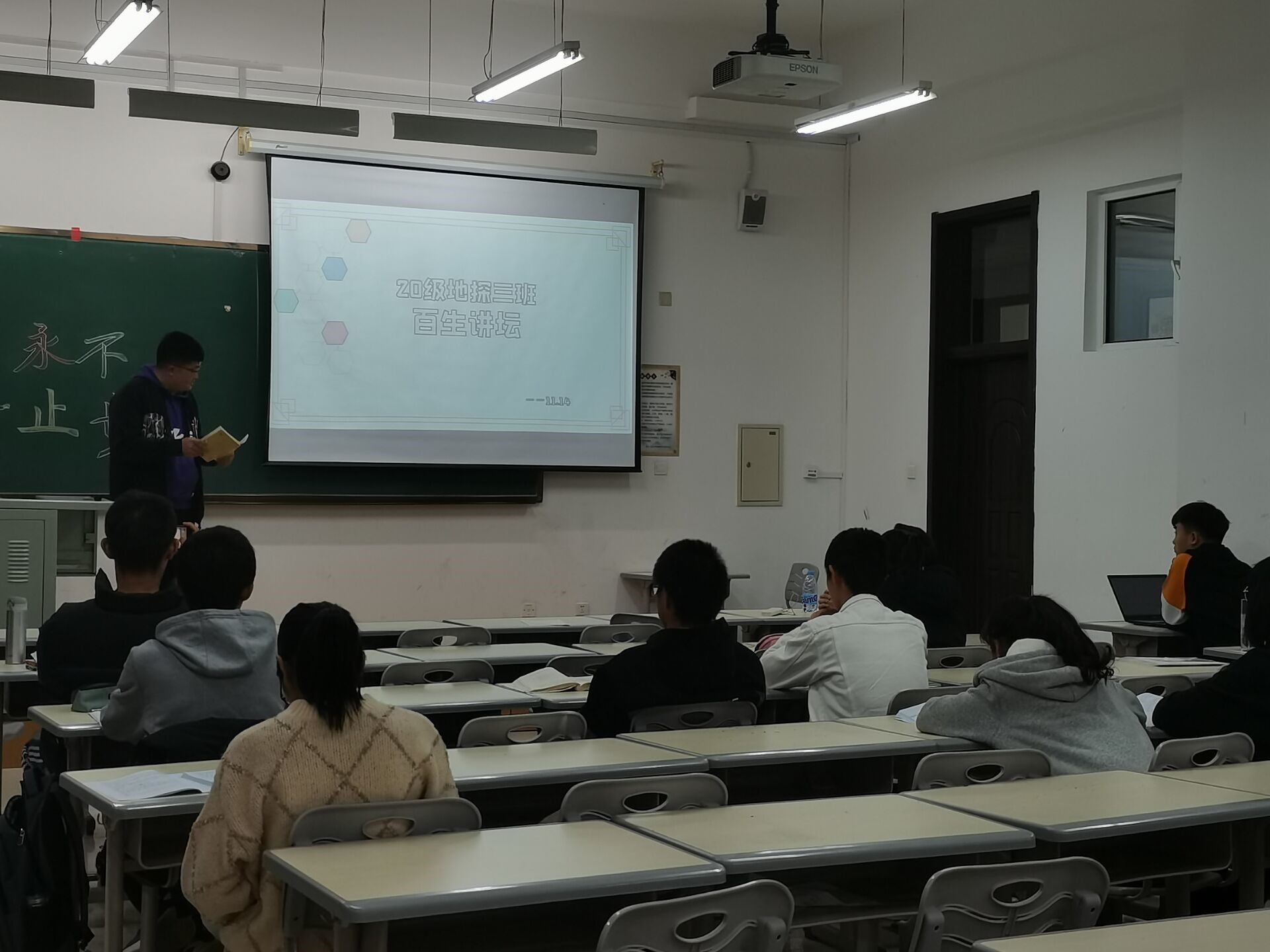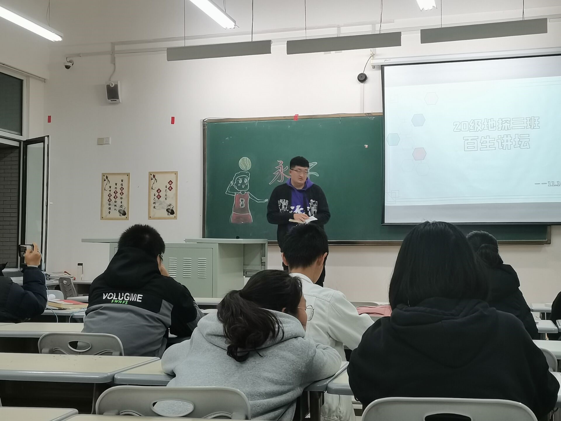 为学习领会毛泽东思想,增进对伟大领袖毛泽东的认识,丰富同学们的精神世界,20级3班于11月14日在李四光楼309教室开展了“百生讲坛”主题班会。永利yl23411团委副书记孙鹏、19级3班班长张凯文以及20级地探三班全体员工参加了本次活动。