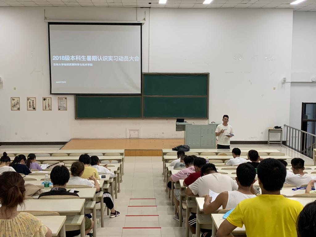 2020年7月26日晚,2018级本科生在中心校区李四光楼第二阶梯教室召开了2020年暑期实习动员大会,地理信息科学专业和测绘工程专业全体员工参会,根据疫情防控要求,现场全面通风并采取同排同向间隔1米就坐,会议由2018级辅导员樊轩铄主持。