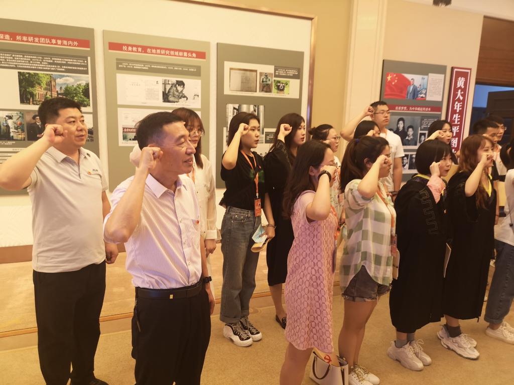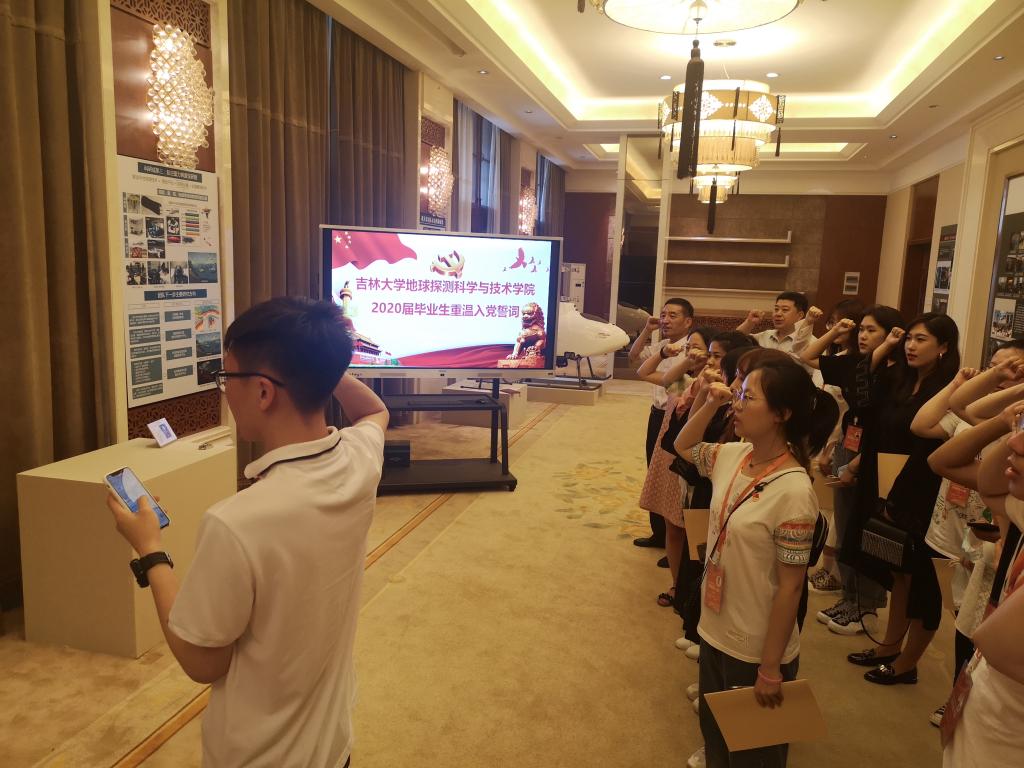 2020年6月22日,2020届毕业生全体党员在地质宫长春厅举行了重温入党誓词仪式。公司党委书记王爱民、党委副书记兼副经理宋宏宇、本科生第一党支部书记樊轩铄参加了活动。