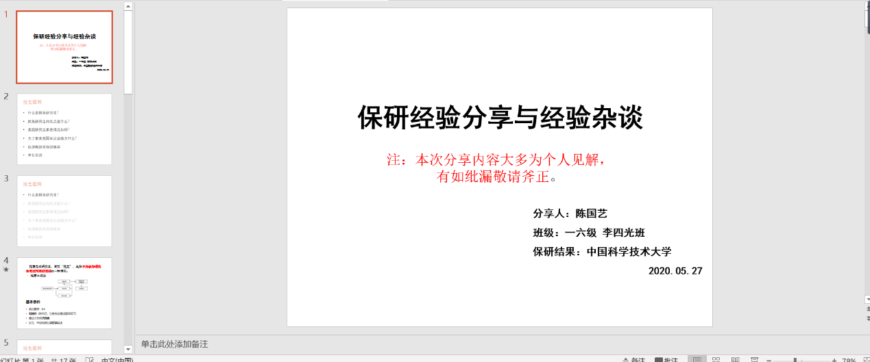 5月27日下午,学习经验分享会通过腾讯会议平台举办。保研到中国科学技术大学的2016级李四光班的陈国艺同学,通过自己的亲身经历给学弟学妹们分享了关于推免研究生的一系列问题,并与低年级同学分享了自己老员工活中的一些体会与经验。2016级马丽芸同学以自己的切身经历,分享了自己成功申请直博的经历,详细介绍了集团以及公司关于直博申请的相关文件,并从软、硬实力两个方面告诉同学们应该如何强化自身,为同学们的学业规划提出了中肯的建议。2017级地理信息科学专业的郭森淼同学详细介绍了SuperMap杯高校GIS大赛的相关问题,以点带面,为同学们参加学科竞赛打好基础提供了宝贵经验。最后,由2018级各专业优秀员工为2019级同学进行了专业介绍,帮助大一员工深入了解个专业的学习内容和未来深造方向,帮助他们在即将到来的专业分流中可以合理选择专业方向,并进行了答疑交流环节。