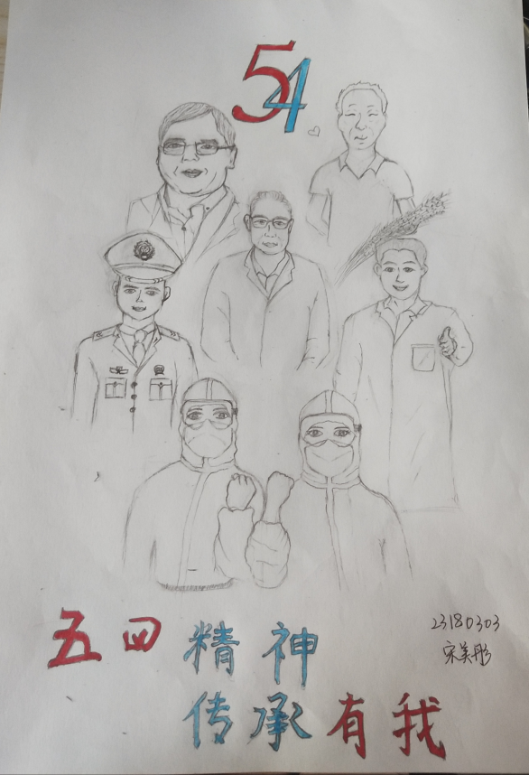 寄语五四,彰显绘画风采。活动期间,同学们将所见所闻、所思所想用于绘画创作,勾勒出一幅幅令人动容、创意十足的绘画作品。