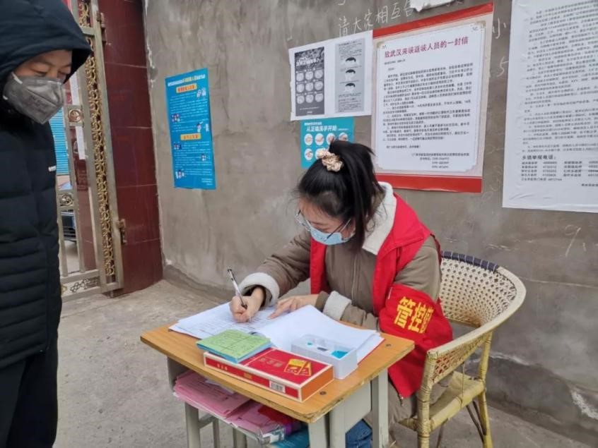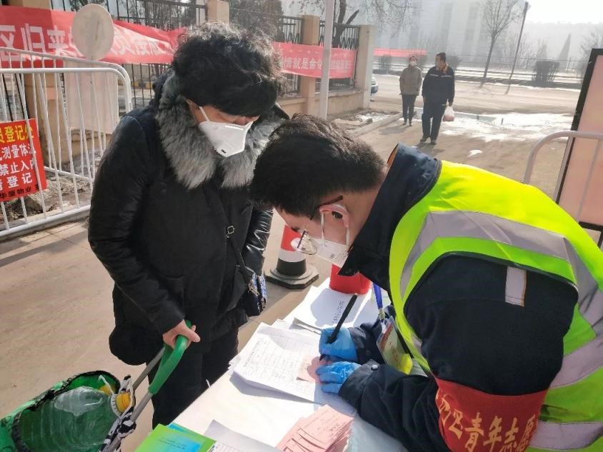 社区防控一线,有他们的身影。张鑫崇、罗方杰、黄芃等20余名同学作为志愿者,参与社区防控工作。2017级闫晴同学于2020年1月28日在共青团河北省委和共青团滦平县委的号召下,加入了河北滦平县的防控工作中。2月1日在统一安排下,前往河北省与北京市交界的巴克什营公安检查站,与卫生院和派出所工作人员一同负责进出京车辆的测温检疫检查工作。后在统一指示和安排下,深入社区防控,进行防疫宣传,同时对出入小区人员进行测温、登记等,帮助社区完成工作。