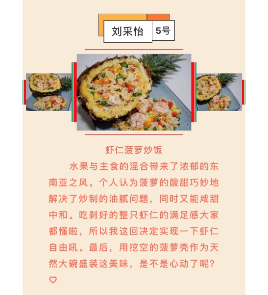 本次活动线上进行,为各位参赛者提供一周的准备时间,无论是具有家乡特色的美食,甜品糕点,还是网红小吃,同学们都可以尝试制作。在此期间,大家将自己做的菜拍成照片或视频,并加上一段自己的描述,作为最终成果提交。我们将所有参赛照片发布到“吉大地探员工天地”微信公众号上,经过为期三天的投票,评选出一二三等奖,及优秀参与奖若干,活动取得良好效果。