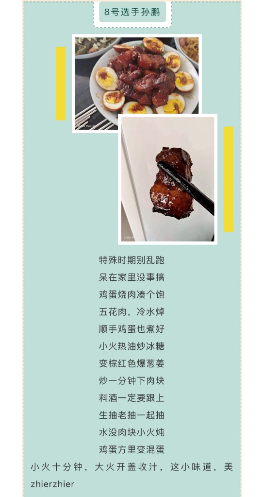 寒假期间,受到疫情影响,开学日期延后,同学们开启了"宅"假期,纷纷变身美食家。为了让美食文化走进大家心中,丰富假期生活,缓解大家的焦虑,永利yl23411开展“美食大作战”活动。