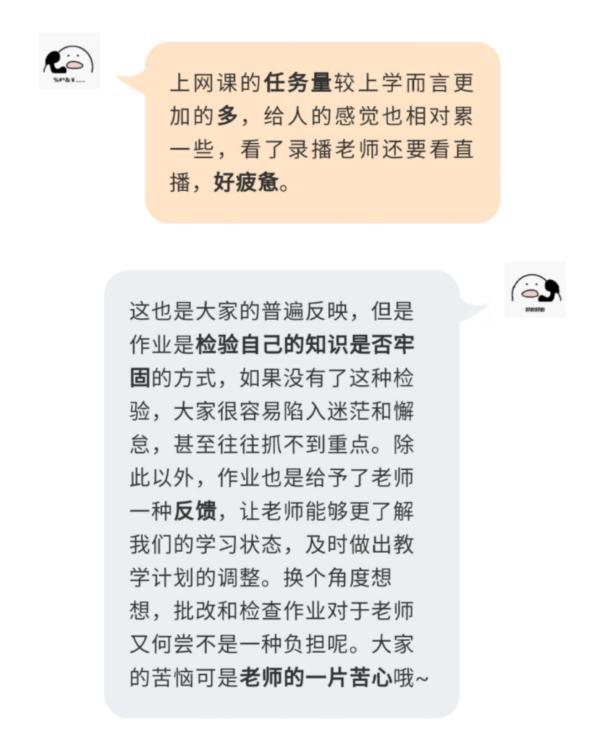 为了云课堂的顺利开展,老师们做了精心准备,如往常一样,或幽默、或严肃,一如既往地关心着同学们的健康与学业。永利yl23411始终关注同学们的思想动态与学习情况,在微信平台定期推送直播上课的注意事项、学习方法和开学心态的调整等,了解同学们在上网课期间所遇到的问题及学习感受,普及心理知识,并及时给出建议。对于员工而言,大家对云课堂也有着自己的感受: