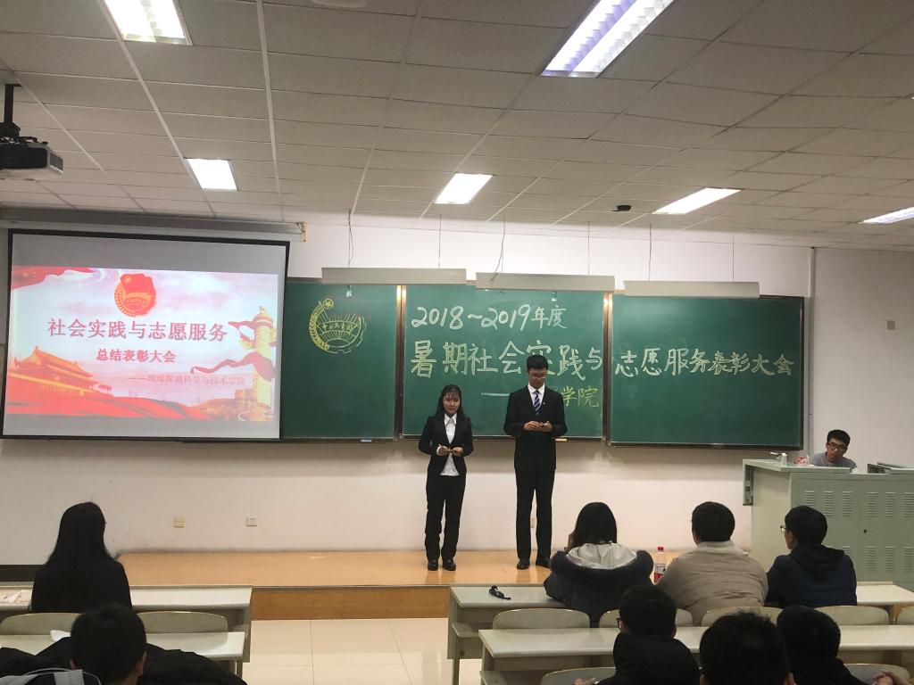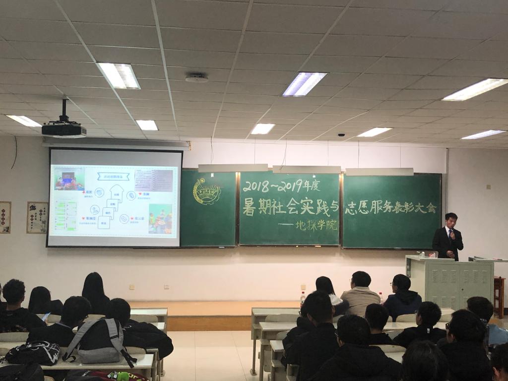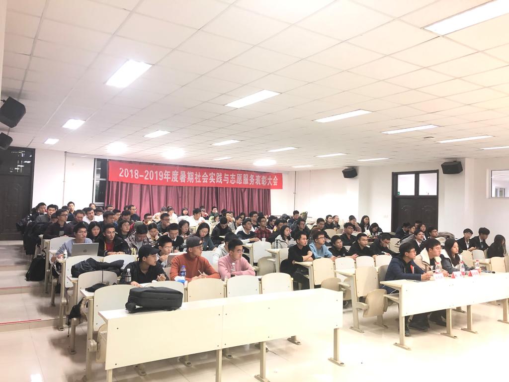 2019年11月22日晚上六点三十分,永利yl23411团委在中心校区李四光教学楼306教室举办2018-2019年度社会实践与志愿服务表彰大会,永利yl23411团委书记司镇通老师、2018级辅导员樊轩烁老师、团委常务副书记姚时、副书记兼秘书长徐光锐、副书记兼社工部部长邹婧博、员工会主席徐含以及受表彰集体、个人及员工代表参加了本次大会。