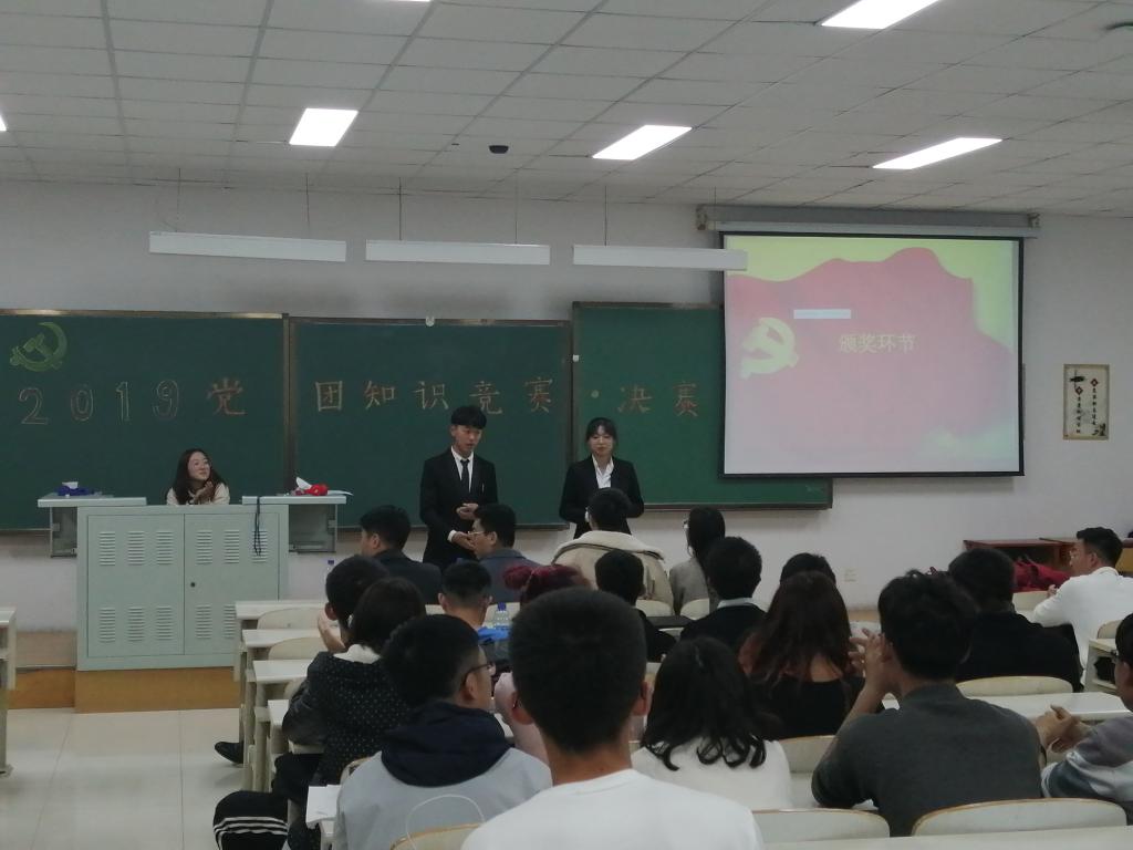 首先,进行必答环节,六个小组共24名成员,依次作答。参赛选手认真审题,仔细思考,谨慎作答,现场看出选手们已经对党团知识有了深入了解,对自己充满信心。接着进行了第二个环节:争分夺秒。每队派出一名选手,限时判断主持人给出的题目正误。然后是最有趣的中场环节,主持人从现场观众中选出12名幸运观众,每人依次头戴耳机同时唱出播放的红色歌曲,由各队参赛选手抢答。现场气氛活跃、秩序良好。最后是竞标环节,每组小队经协商后决定对每题下一定的赌注分数,答对得到相应的分数,答错则扣分。各个小队都积极竞标,争取得分机会。答题环节结束后由樊轩铄老师进行点评,他指出:看到了同学们对党团知识的传承与延续,看到了当代青年对党团知识的重视,并鼓励同学们在学习党团知识方面更上一层楼。樊轩铄老师的讲话使同学们备受鼓舞。经过比赛,评审委员会根据每队得分评选出了一等奖一队,二等奖两队,三等奖三队。