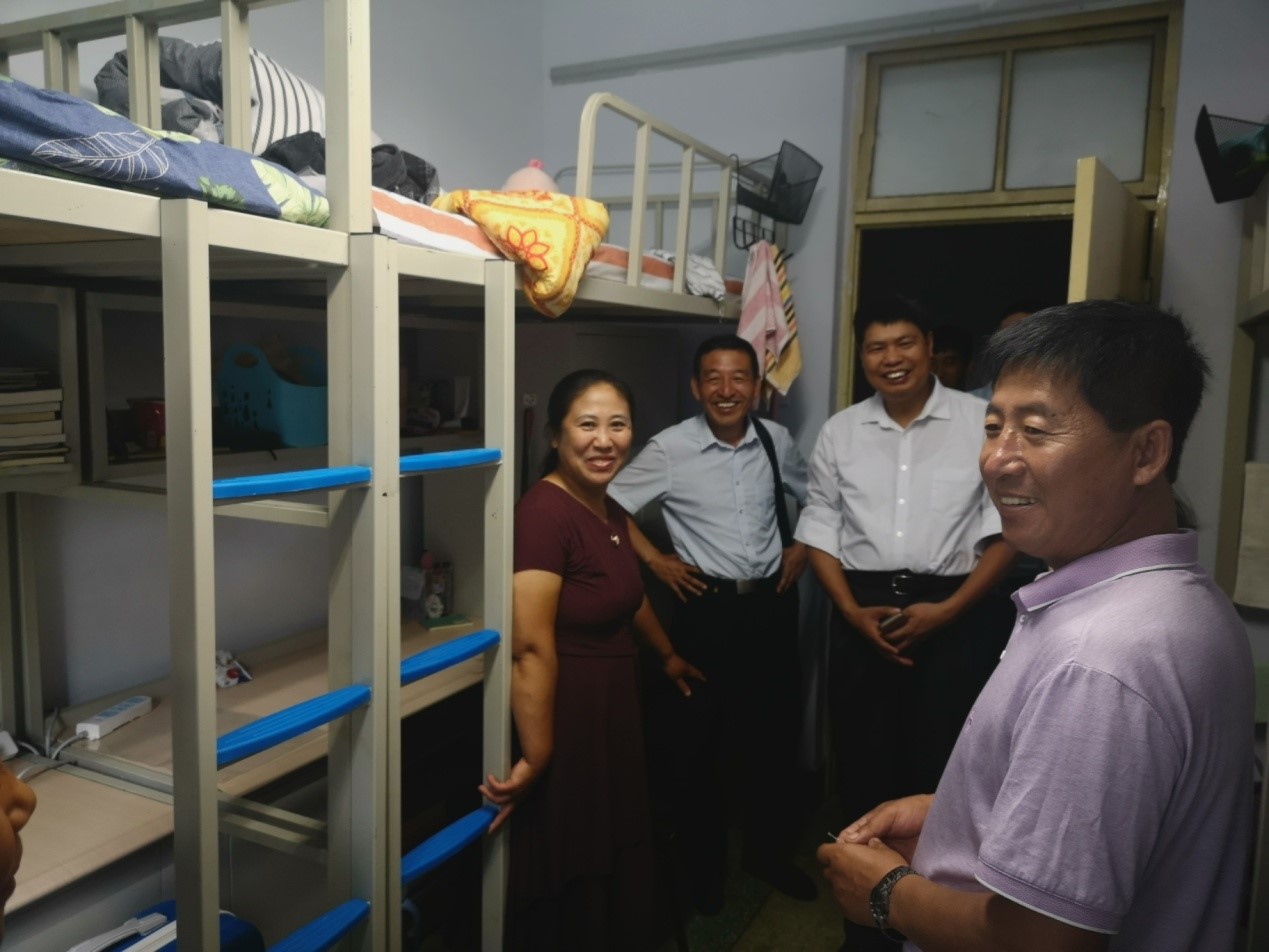 会后,曾经理、王书记一行又来到南苑二公寓看望公司已经入住的新生。曾经理同新生及新生家长热情问候,关心并询问了员工生源地,到校方式,是否适应住宿生活等问题。