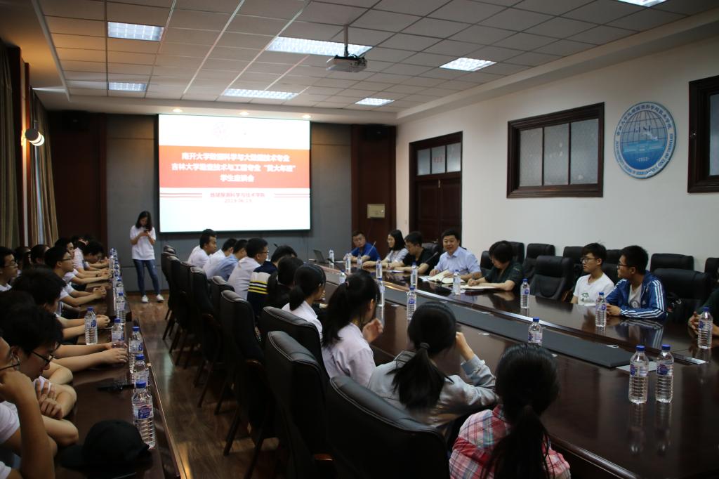 双方互相介绍后,两个班级的同学就校史、黄大年精神、两所公司的联系以及两个专业的关联进行了深入交谈,南开的同学们纷纷表示自己以后也要以黄大年精神作为精神指引,黄大年班的刘冉明和姚时同学则对黄大年精神进行了深入的阐释而且向南开的同学们推荐了《黄大年》电影和电视剧。